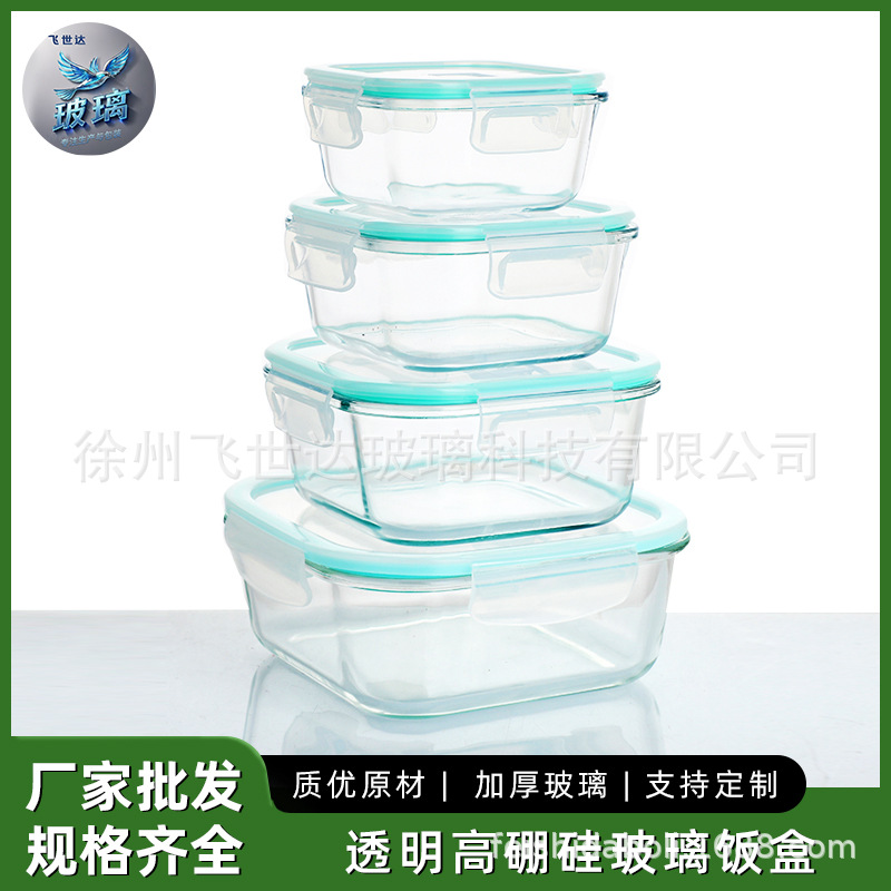 国境を越えたアマゾン正方形透明ガラスボウル電子レンジ加熱サラリーマン弁当箱密封弁当新鮮箱