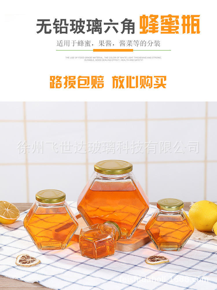 透明六角蜂蜜瓶密封貯蔵タンク食品収納缶詰唐辛子キャビア分注ガラス瓶卸売り