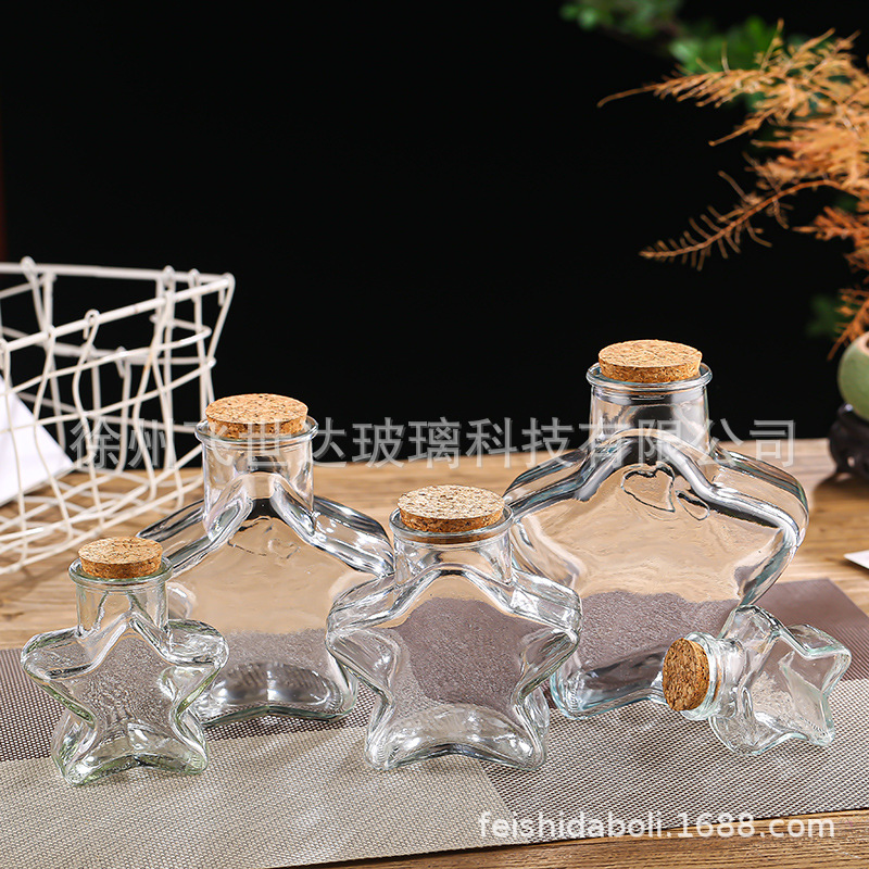 カスタマイズされた卸売五芒星コルクボトルクリエイティブギフトボトルガラスボトルスター折り紙透明保存瓶
