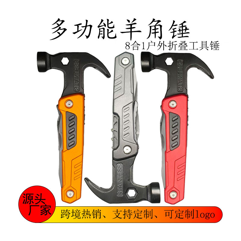 跨境热销多功能斧头锤户外折叠组合工具锤野营多功能折叠刀钳锤子