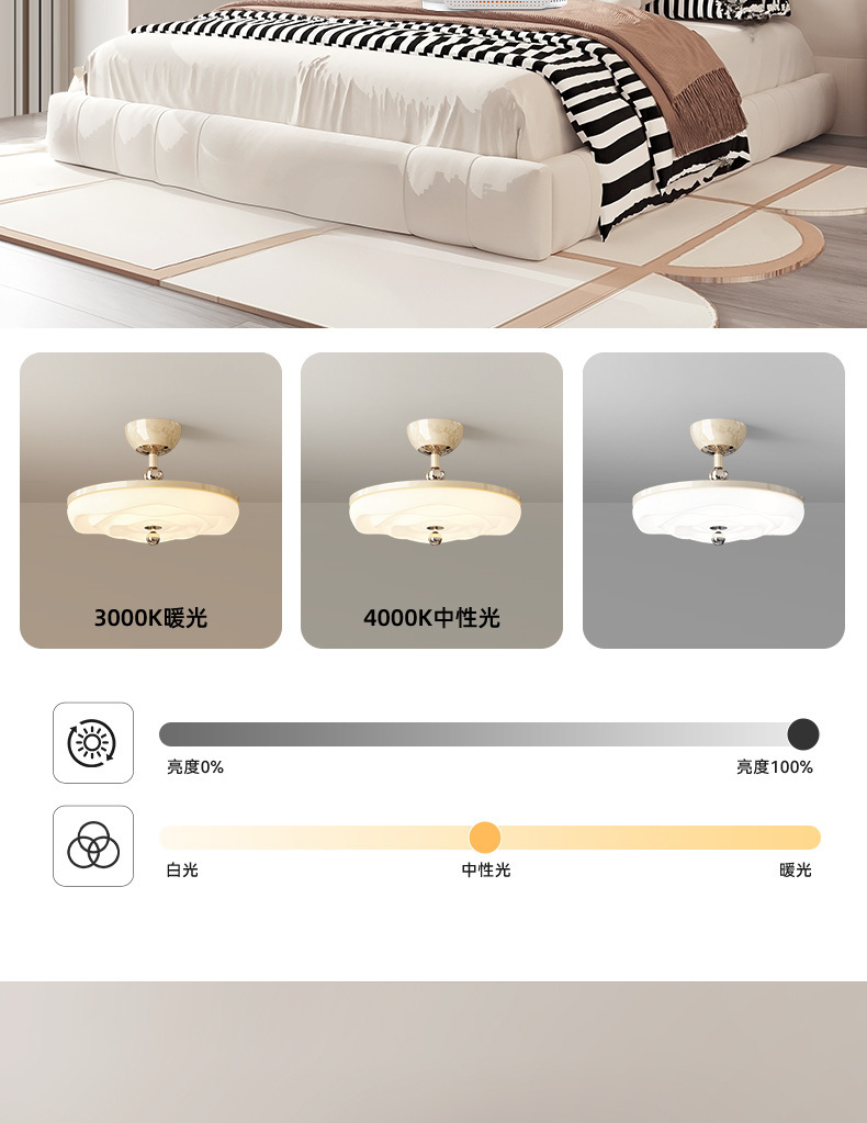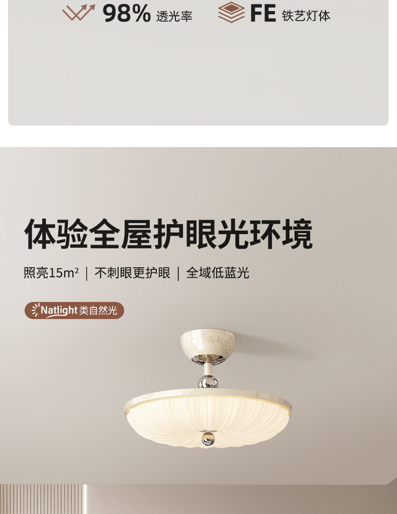 全スペクトパックハウス中古寝室天井灯クロム色超薄レトロ乳豆保護眼極簡主臥室灯
