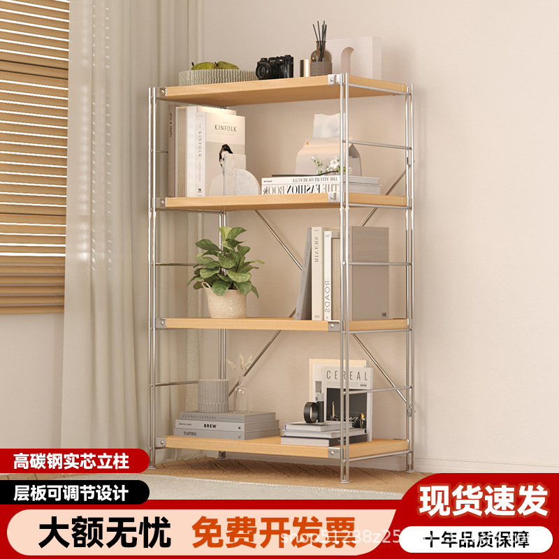 スチールウッド収納ラック和風多層収納ラック床置き収納ラック家庭用多機能本棚ログスタイルラック