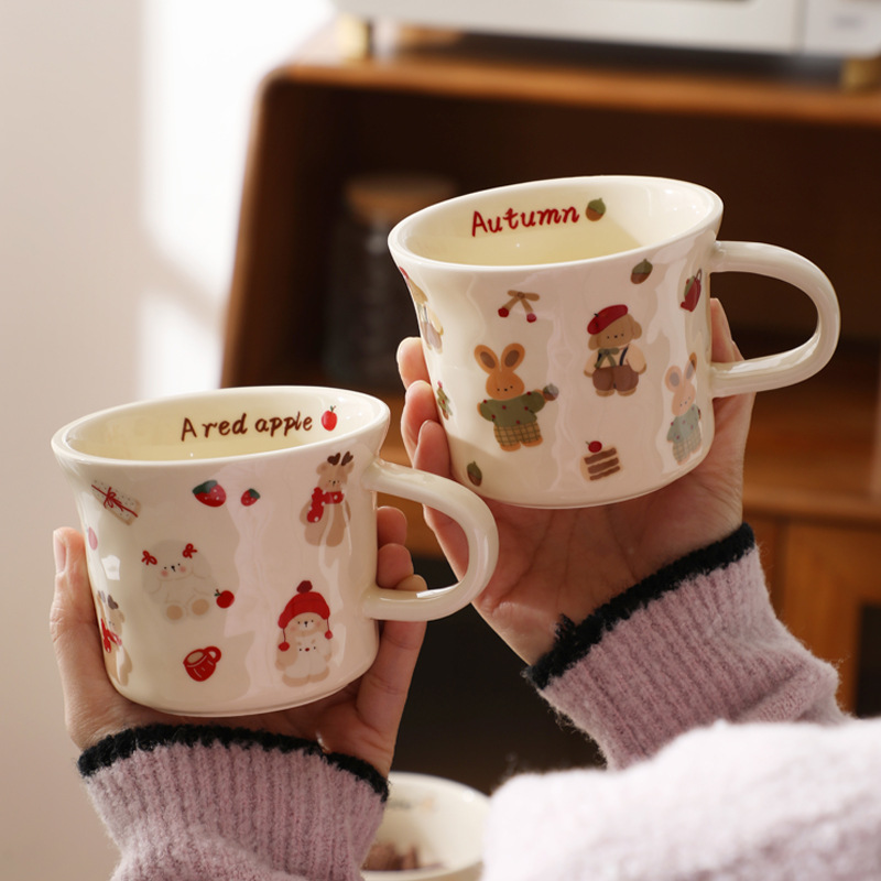 クリエイティブアニメ陶磁器カップは韓国ミルクfufuマグカップ家庭用かわいい水朝食牛乳カップコーヒーカップを出した