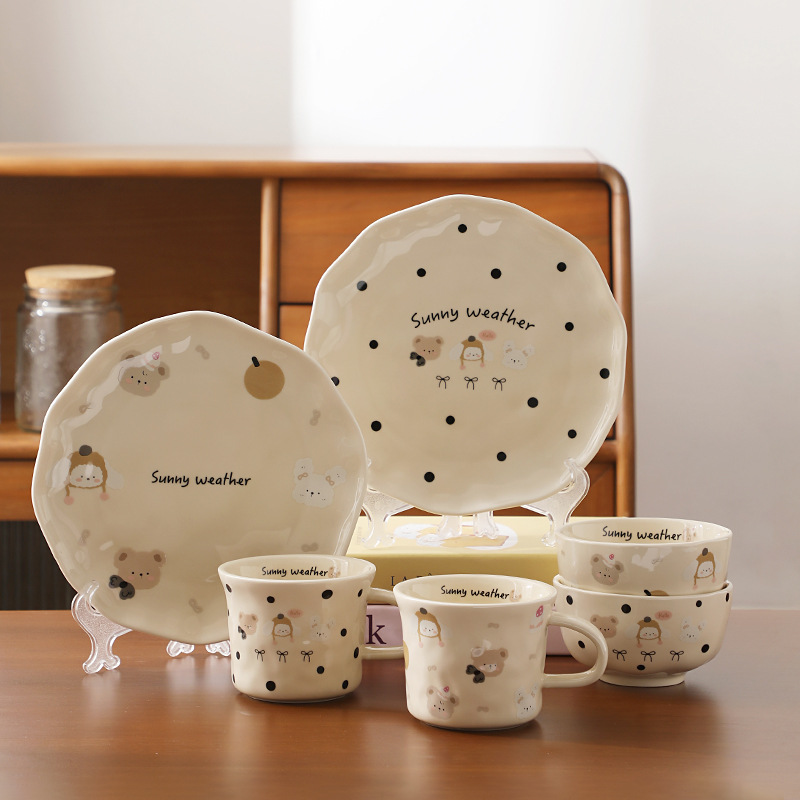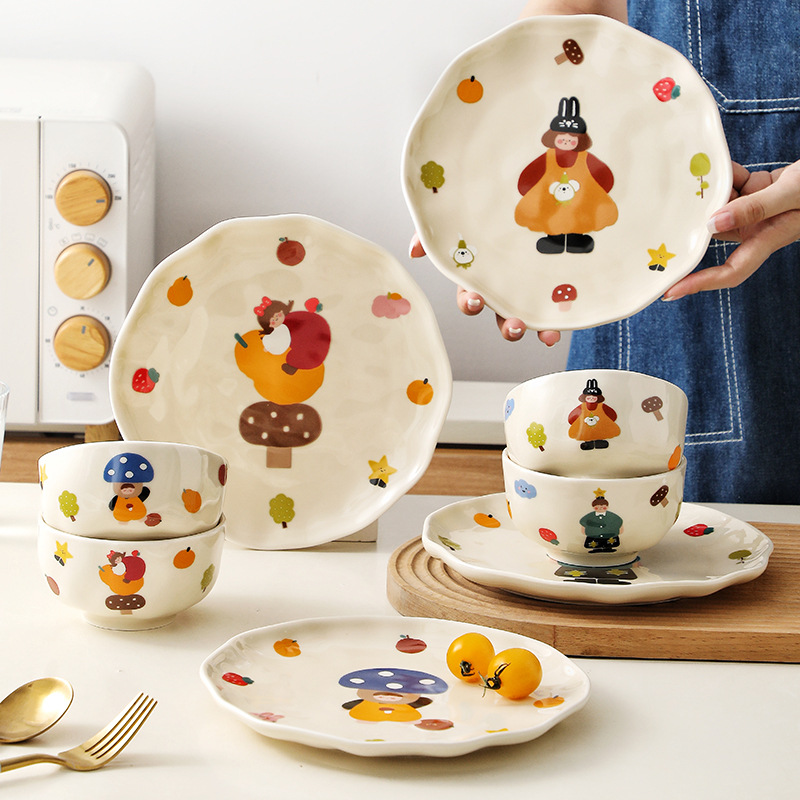 家族4人親子食器セット家庭用食器皿陶磁器皿かわいいアニメ食器皿皿皿皿
