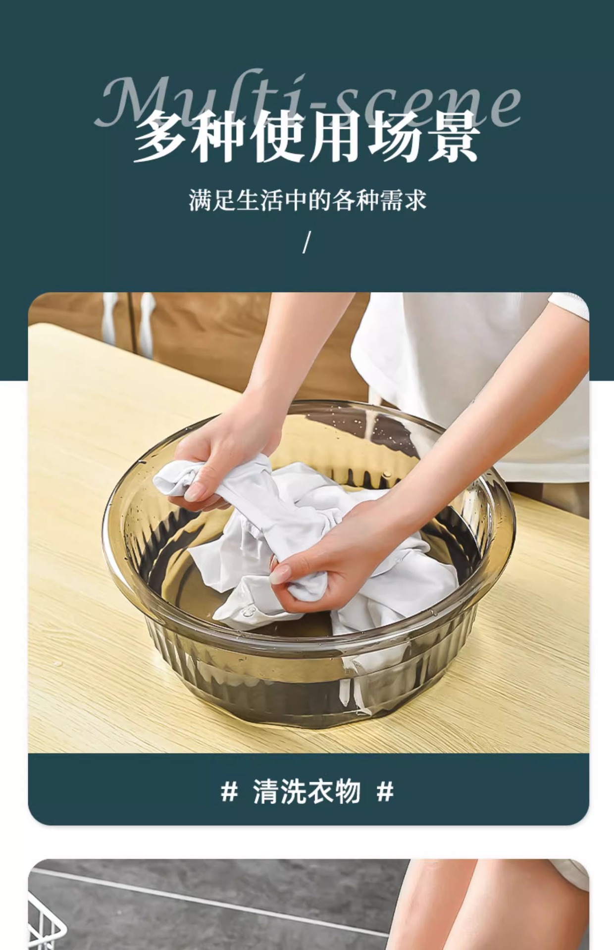 厚みのあるプラスチック洗面器家庭用大型透明洗濯洗面器学生寮足洗い桶ベビー洗面器