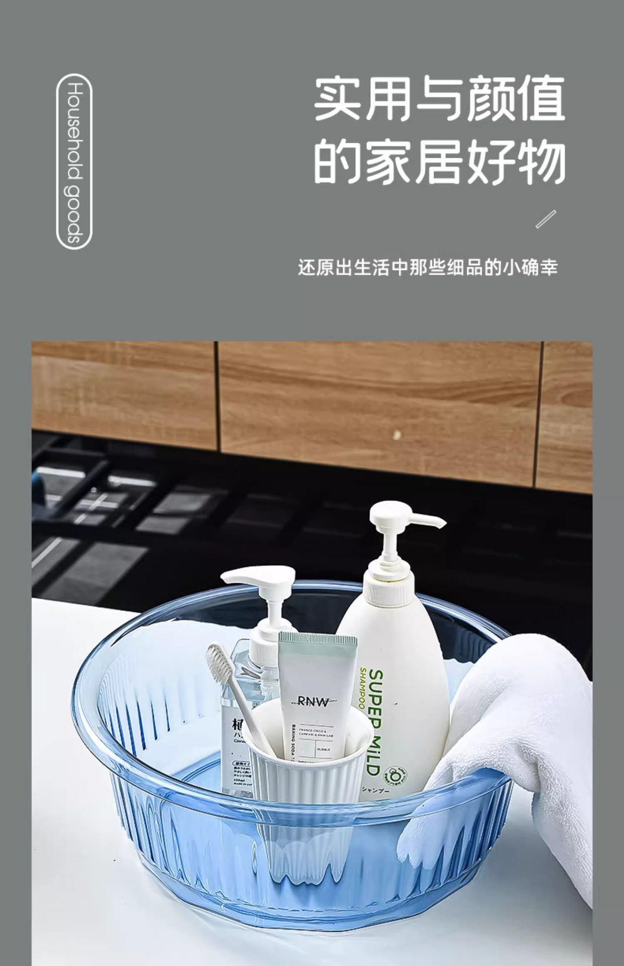 新しいタイプの洗面器の家庭用の軽くて豪華で高い顔の値は透明で厚い洗面器の洗面器の洗面器の寮の洗面器のプラスチックの洗面器です。