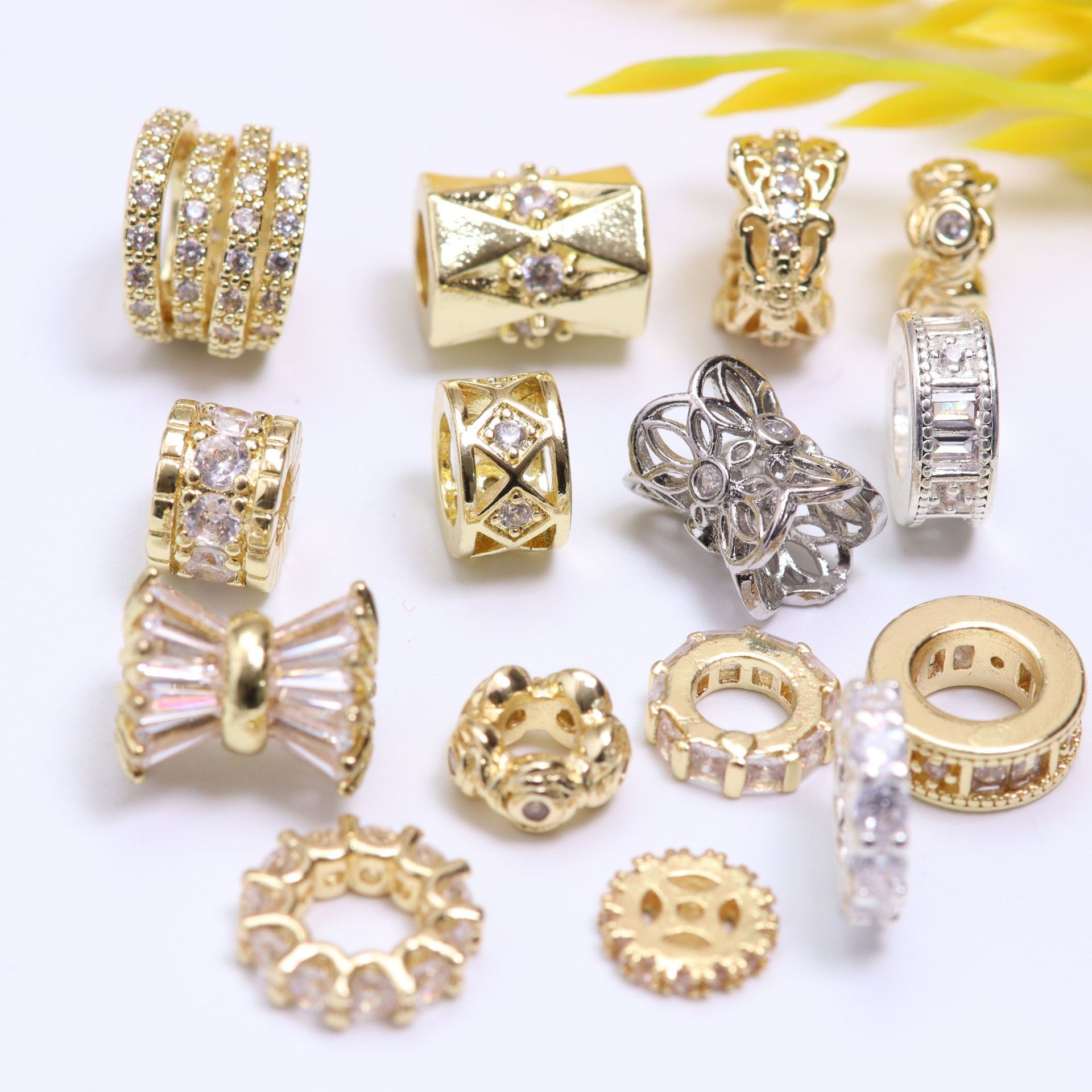 銅メッキ18k金保色はジルコンを入れて二重の金覇のスペーサーの大きい穴の隔珠の玉の車輪の数珠のブレスレットの部品を挿します。