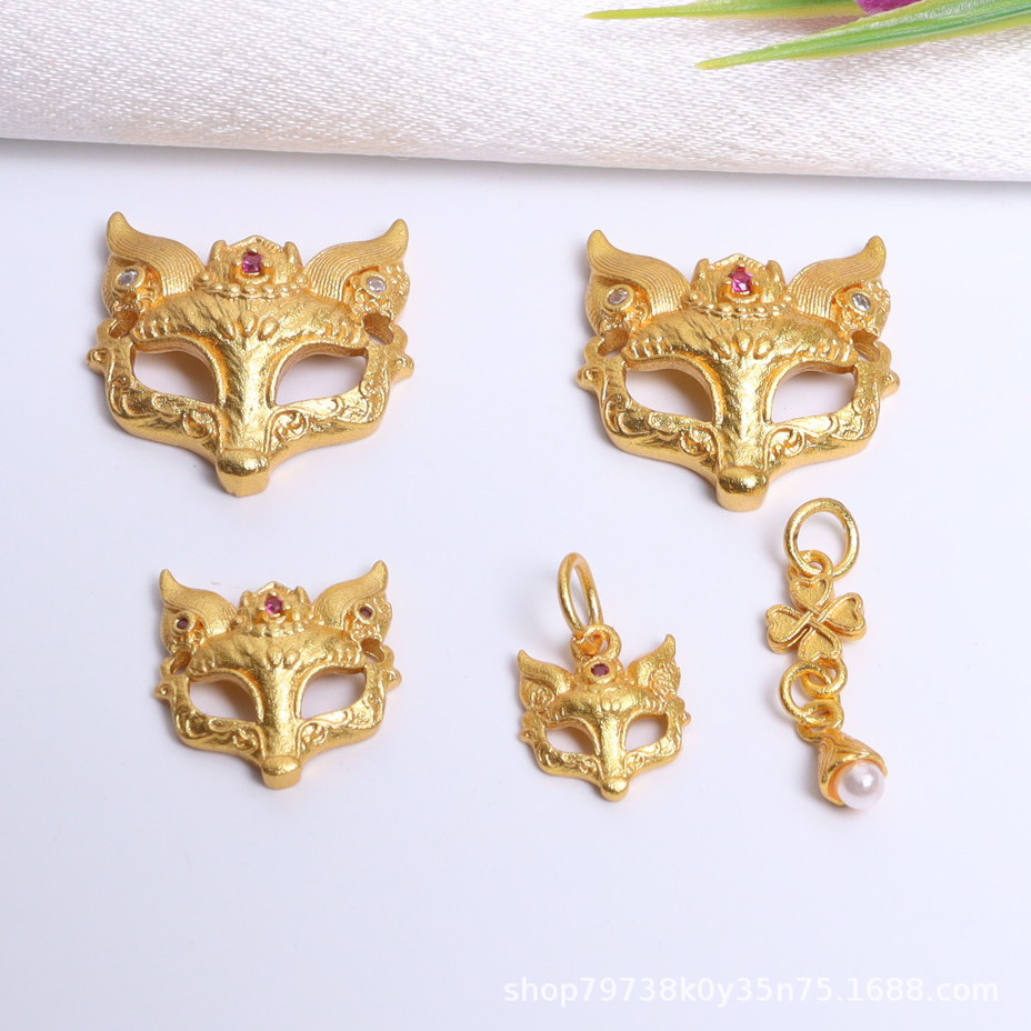 保色沙金镶钻狐狸面具吊坠镂空澜焰狐项链手链挂坠饰品diy手工配