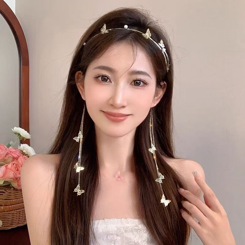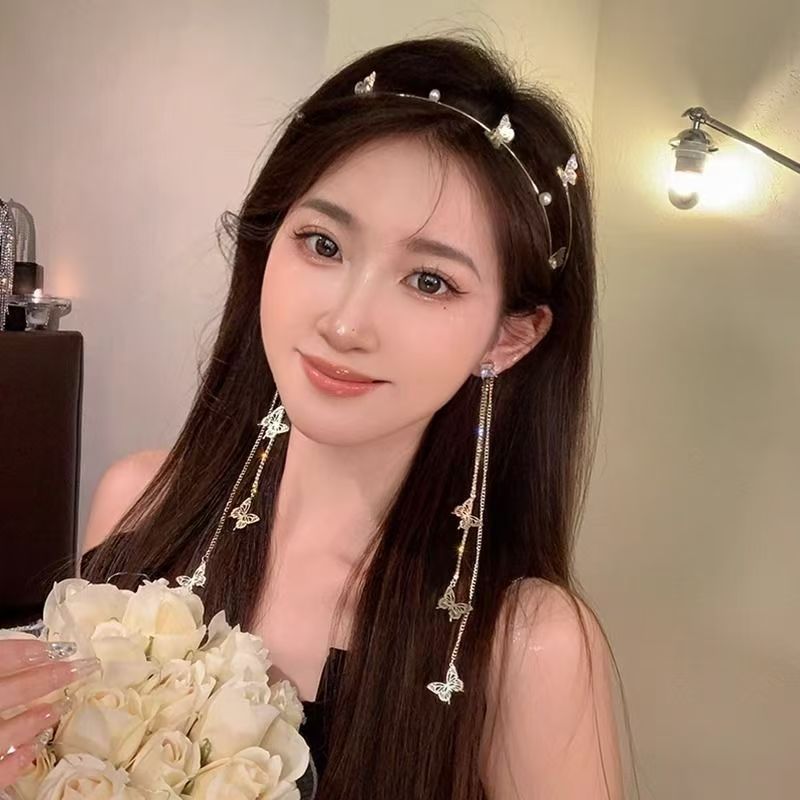 カチューシャの新型感のネットはダイヤモンドの蝶のフリンジヘアを入れます。