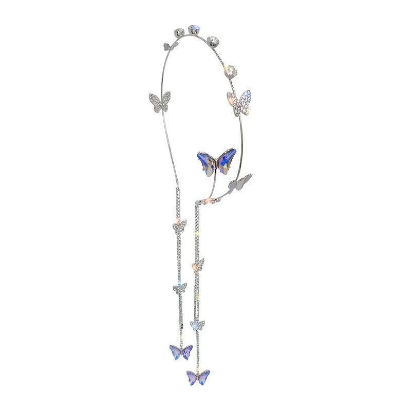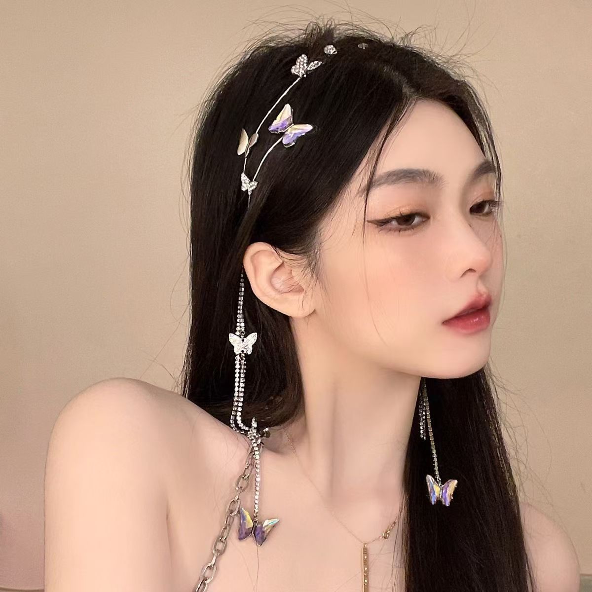 高級感のある手作りダイヤモンド装飾バタフライタッセルヘアピン、カーソンスタイルの妖精のような美しいヘアバンド、プリンセスヘアバンド、エルフヘアアクセサリー。