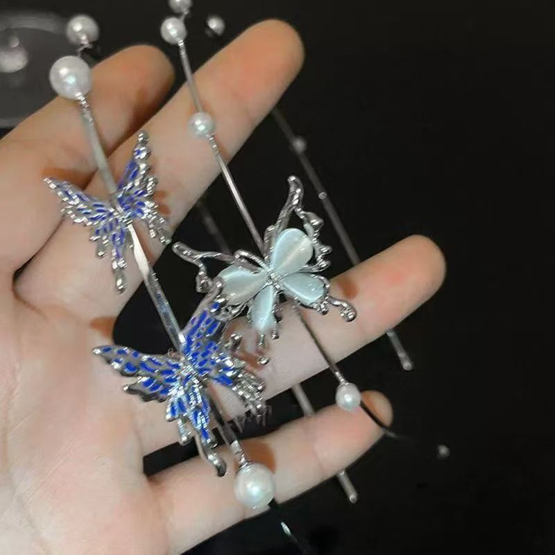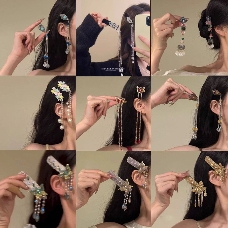 新中式蝴蝶流苏发夹2025年新款拍照氛围感侧边夹小众精致百搭发饰