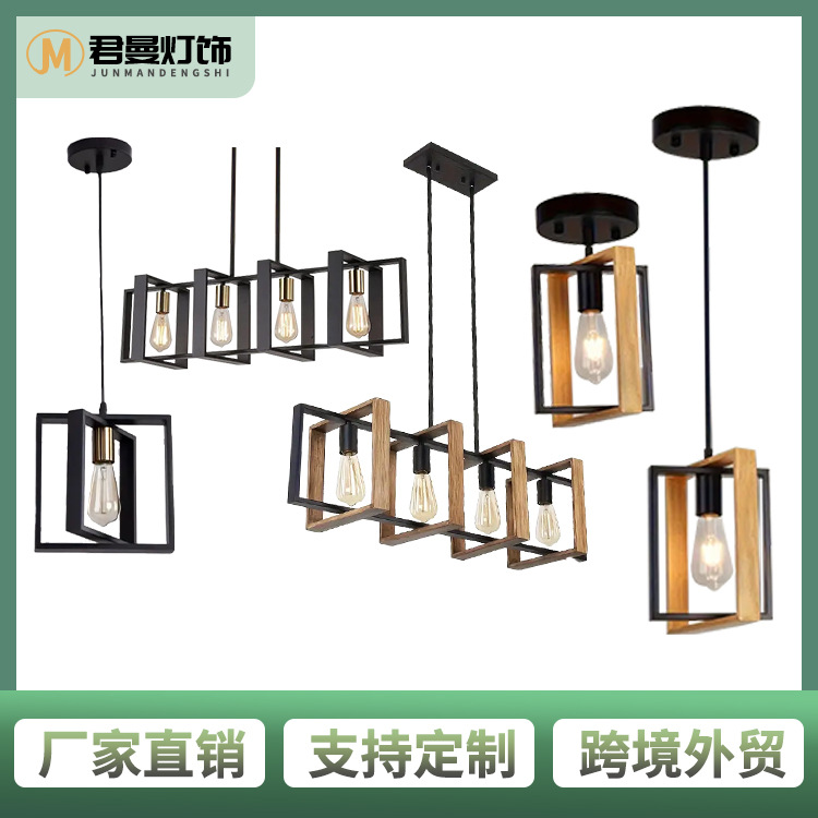 国境を越えてアマゾンの客間灯アメリカ工業風北欧実木バー電気スタンドレストラン鉄芸シャンデリア6270