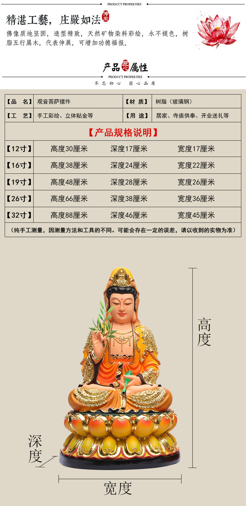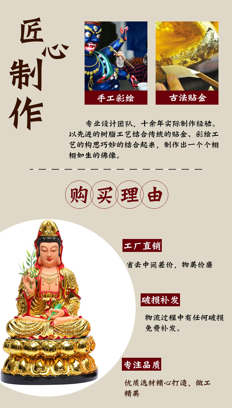 慈慧仏具メーカー卸売り観世音仏像家庭に南海観音菩萨樹脂観音置物仏を供える