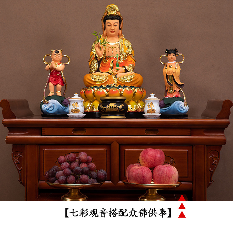 善吉仏像を供える観音仏像樹脂観世音菩薩の家庭用置物七色観音神像