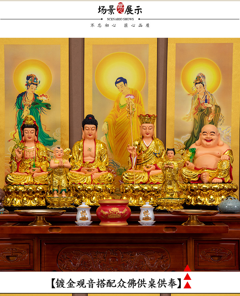 家には観世音菩薩の釈迦の莫尼仏像の地蔵王の如来仏陀の西洋三聖家庭があります。