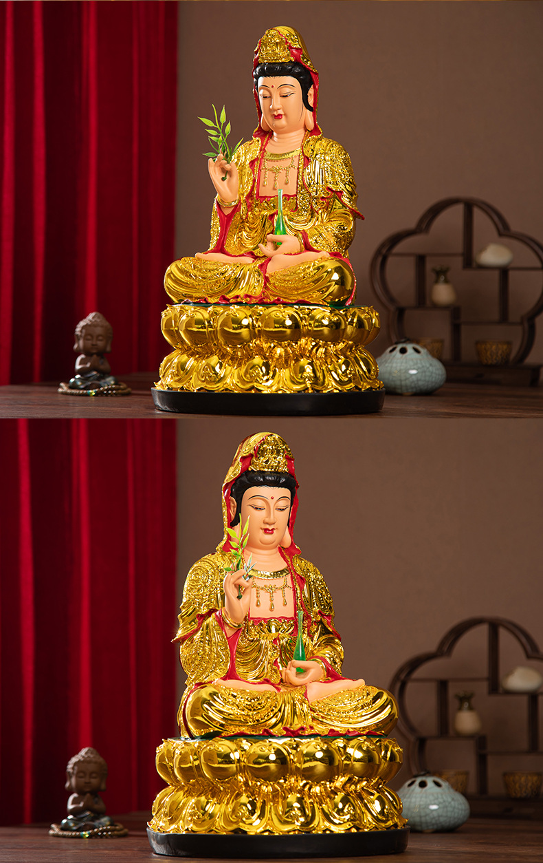 卸売り観世音仏像は紅衣観音仏像樹脂観世音菩薩の家庭用置物沙金観音を供える。