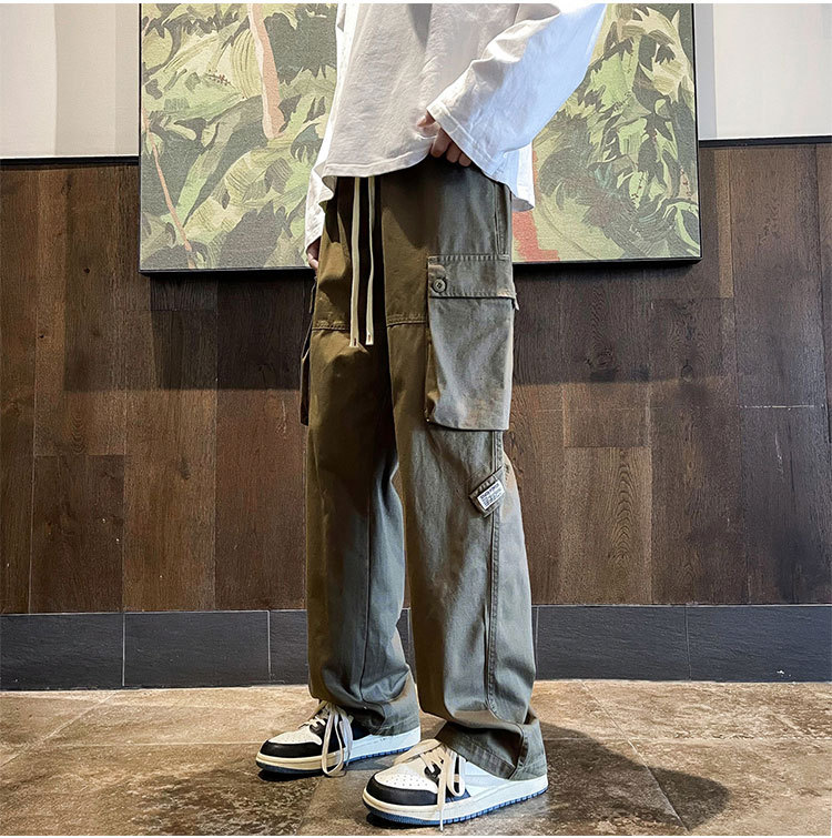 メンズ夏ストレートオーバーオール、マルチポケット、ハンサムカジュアル、ハイストリートスポーツ、日本のトレンディな若者パンツ