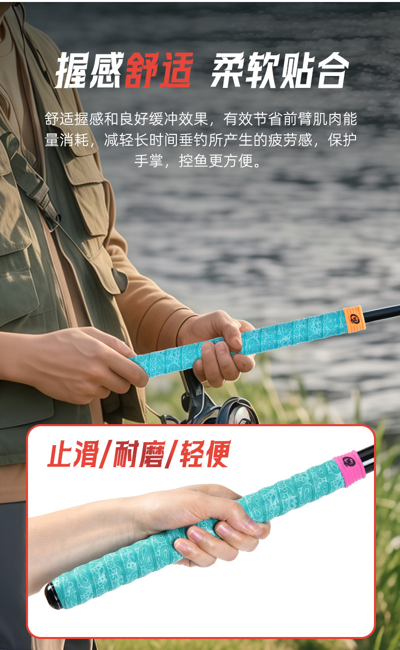 亚马逊鱼竿缠把带舒适吸汗带超薄手把带减震手胶缠绕带垂钓用品