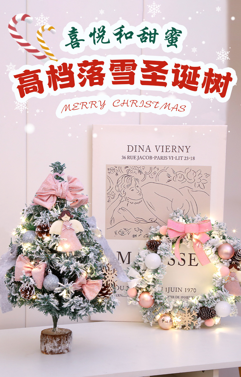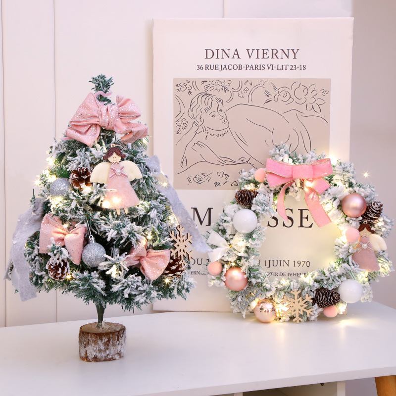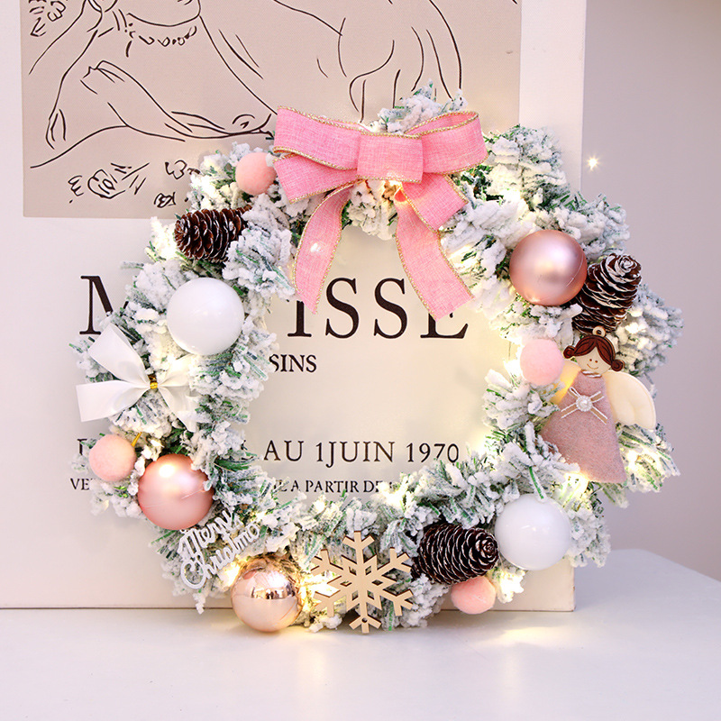 クリスマスinsシミュレーション落雪装飾ピンク花輪門掛クリスマスツリーホテル家庭用クリスマスショーウインドー衣装