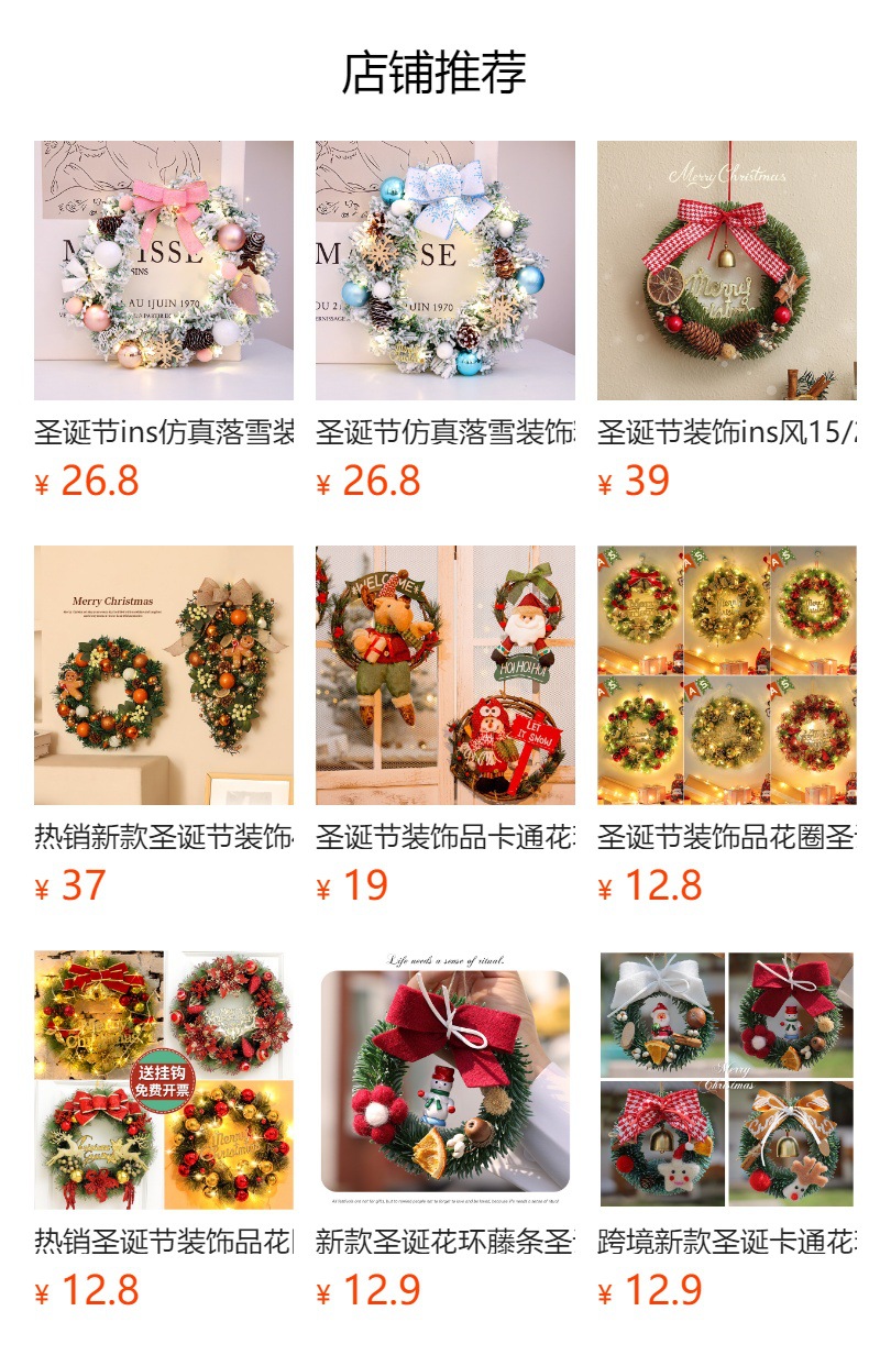 圣诞节装饰花环挂件拍照装扮场景布置藤条圣诞树挂饰周边墙挂门挂