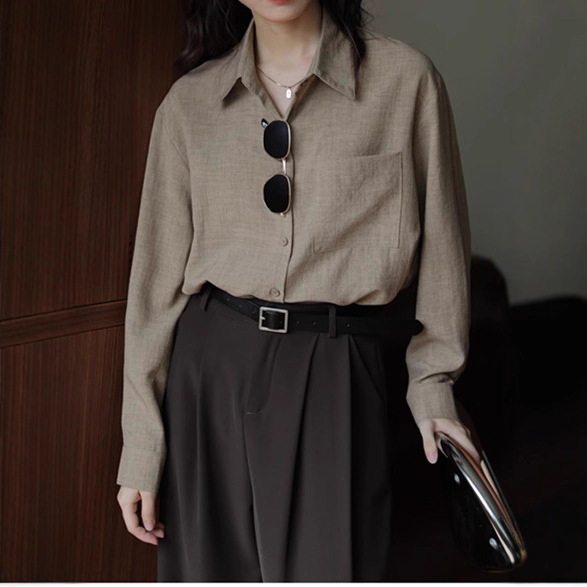 港味复古纯色长袖内搭衬衫女百搭日常休闲衬衣通勤宽松显瘦上衣服