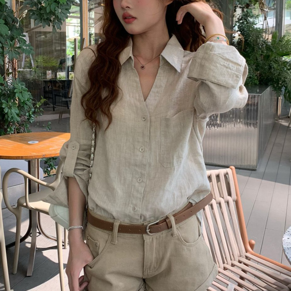 老钱风松弛感阔版亚麻长袖衬衫女防晒衬衣设计感显瘦休闲百搭外套