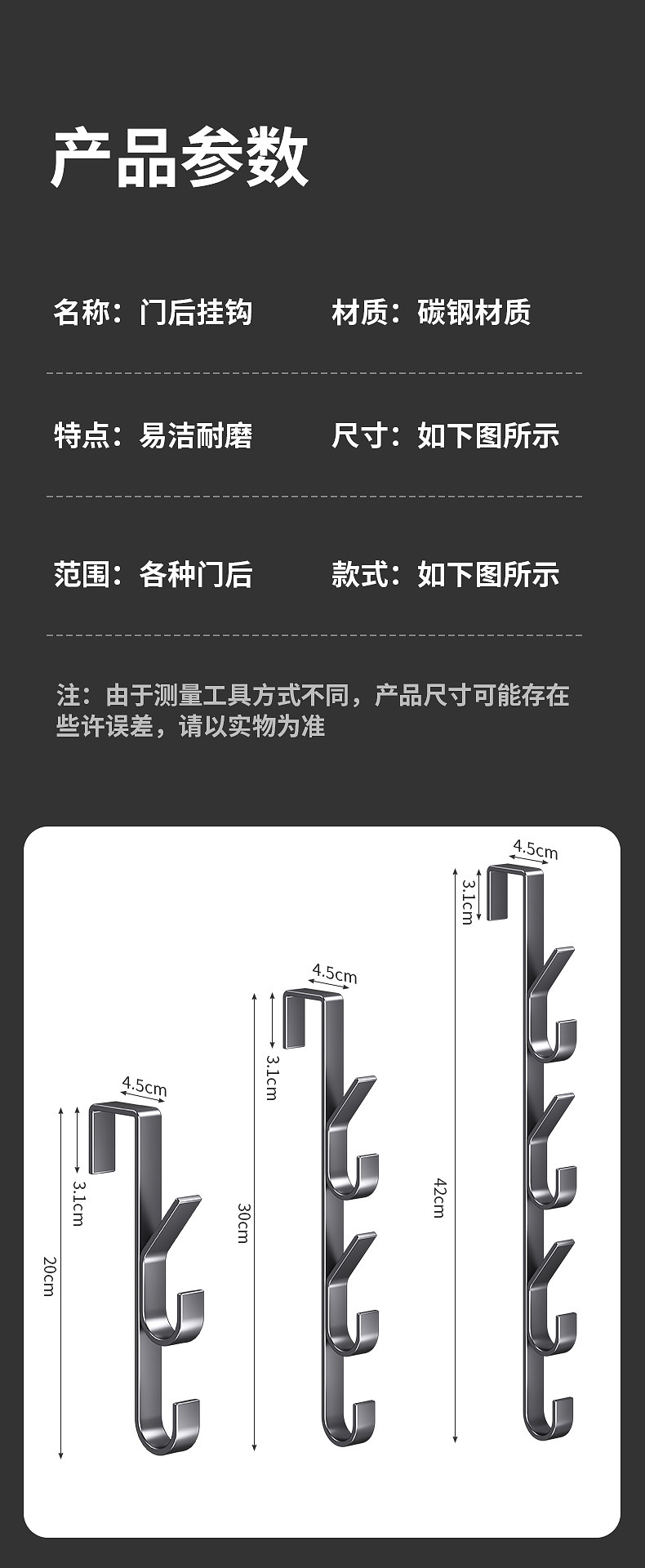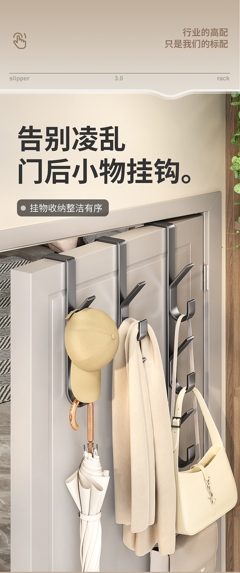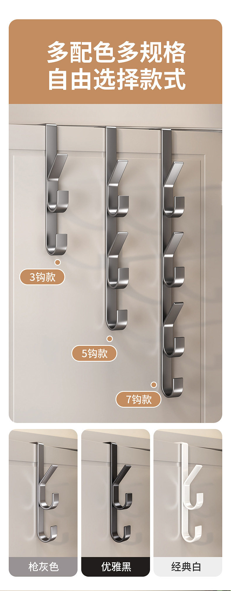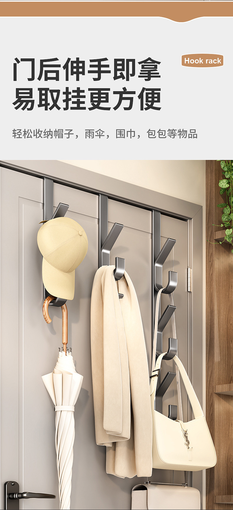门后挂钩竖排免打孔金属挂衣钩门上挂包置物架包包帽子收纳神器
