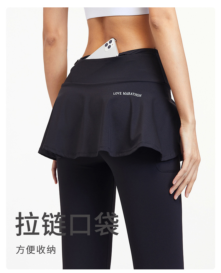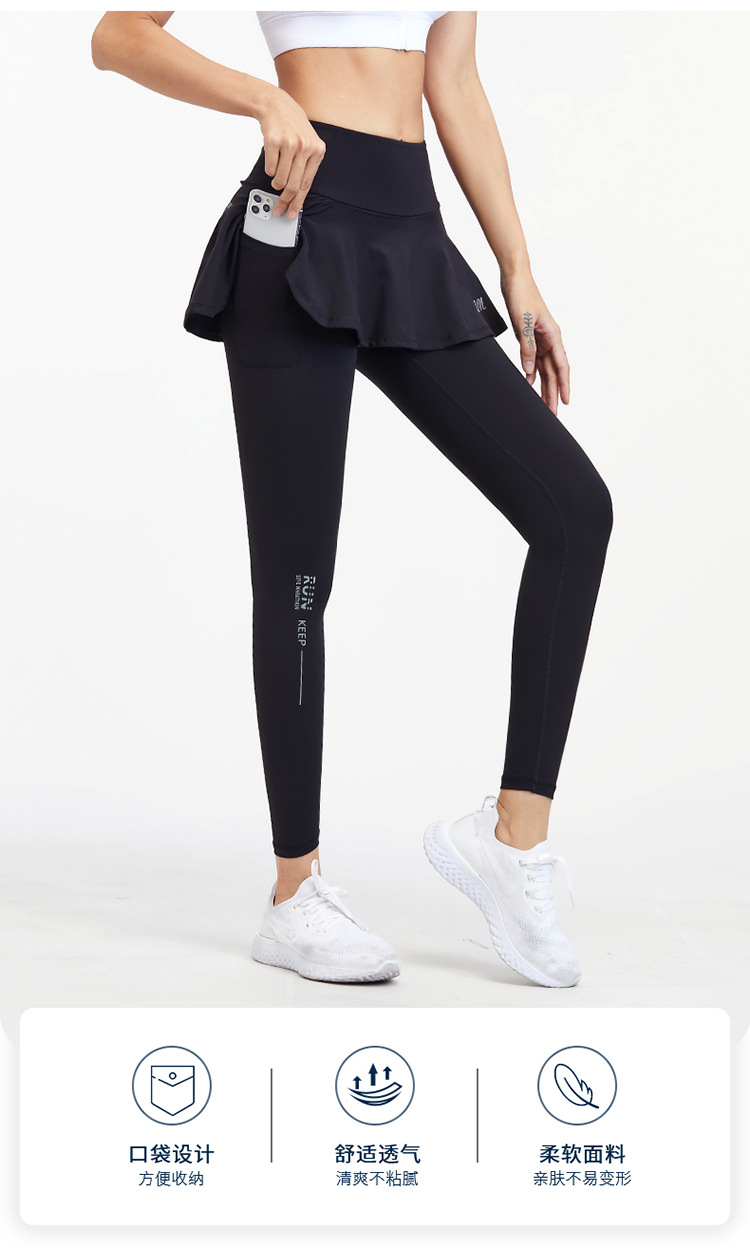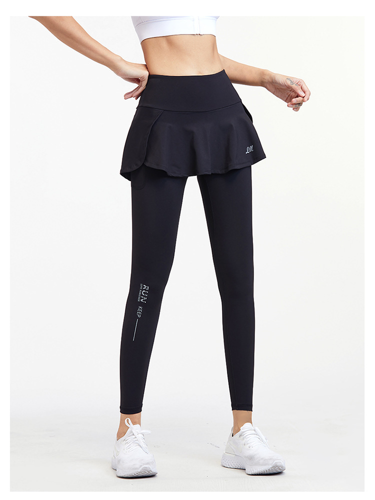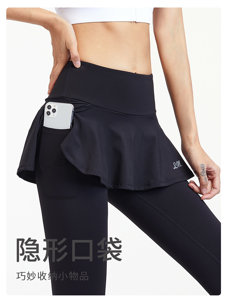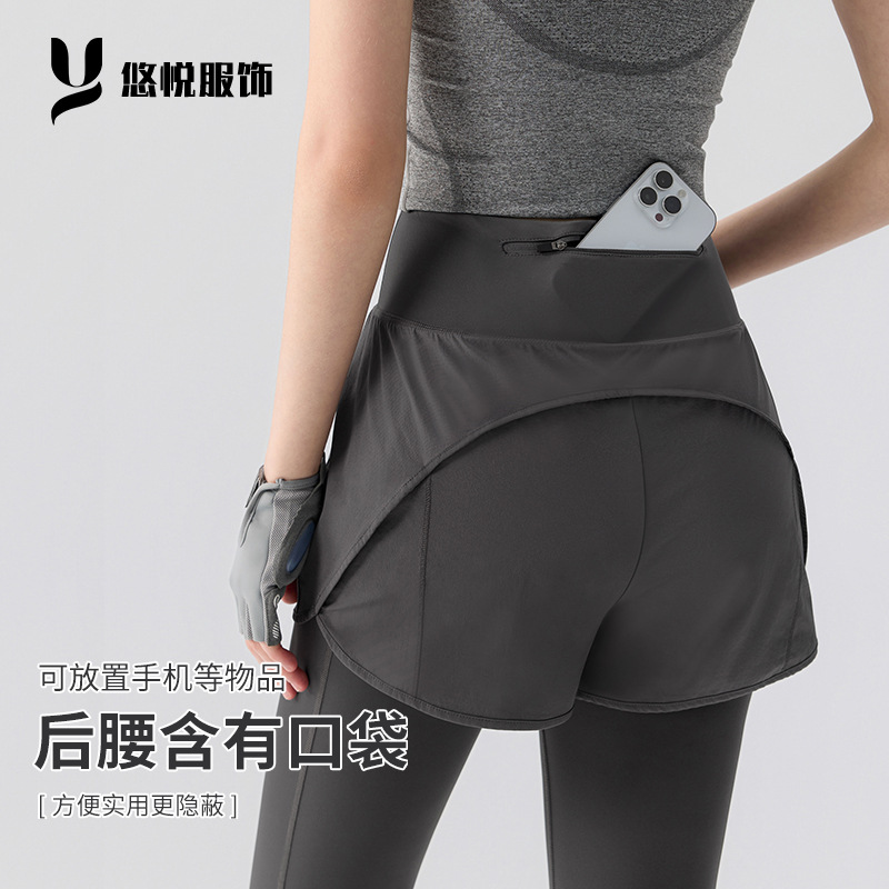 女性用クロスボーダーヨガパンツ、ハイウエストヒップリフティング、偽ツーピースフィットネスパンツ、アウターウェアランニングスカート、ヒップリフティング用通気性スポーツパンツ