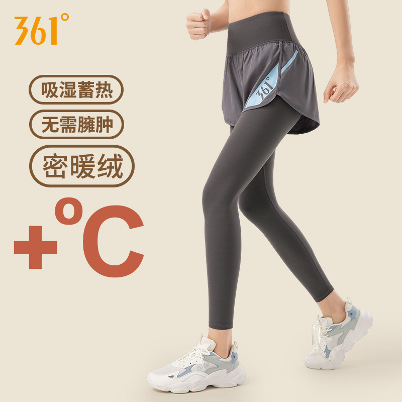 361ヨガパンツにベルベットをつけて秋冬の高腰ランニングフィットネスパンツヨガ服に偽の2枚のスポーツパンツの女性を厚くする