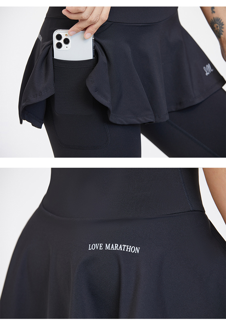 フェイクツーピーススポーツショートスカートレディーステニススカートAラインバドミントン速乾性露出防止ランニングプリーツヨガスカート