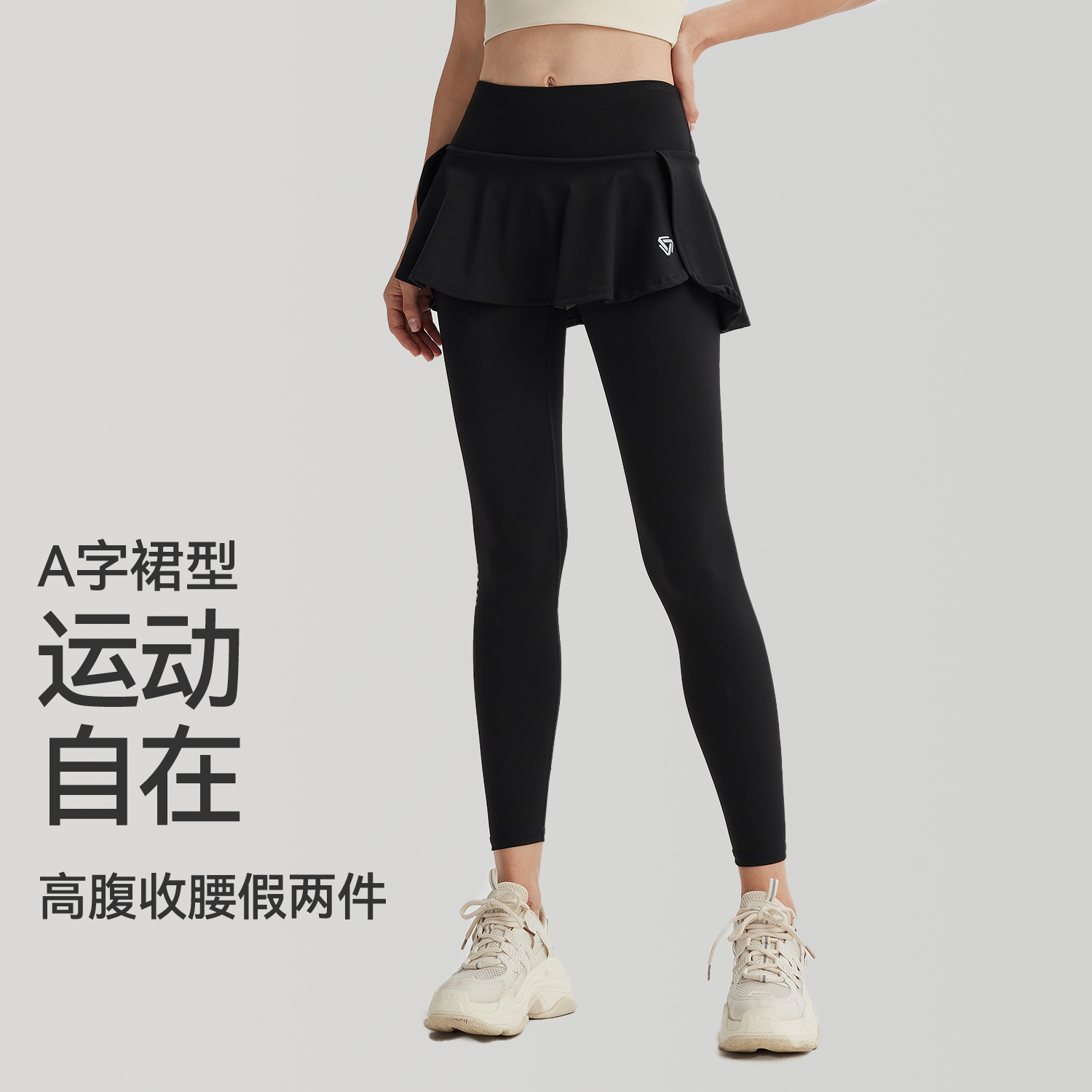 瑜伽裤女高腰提臀假两件健身长裤外穿跑步裙裤透气运动裤提臀