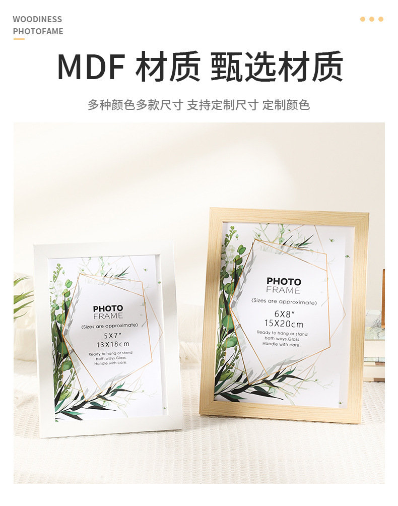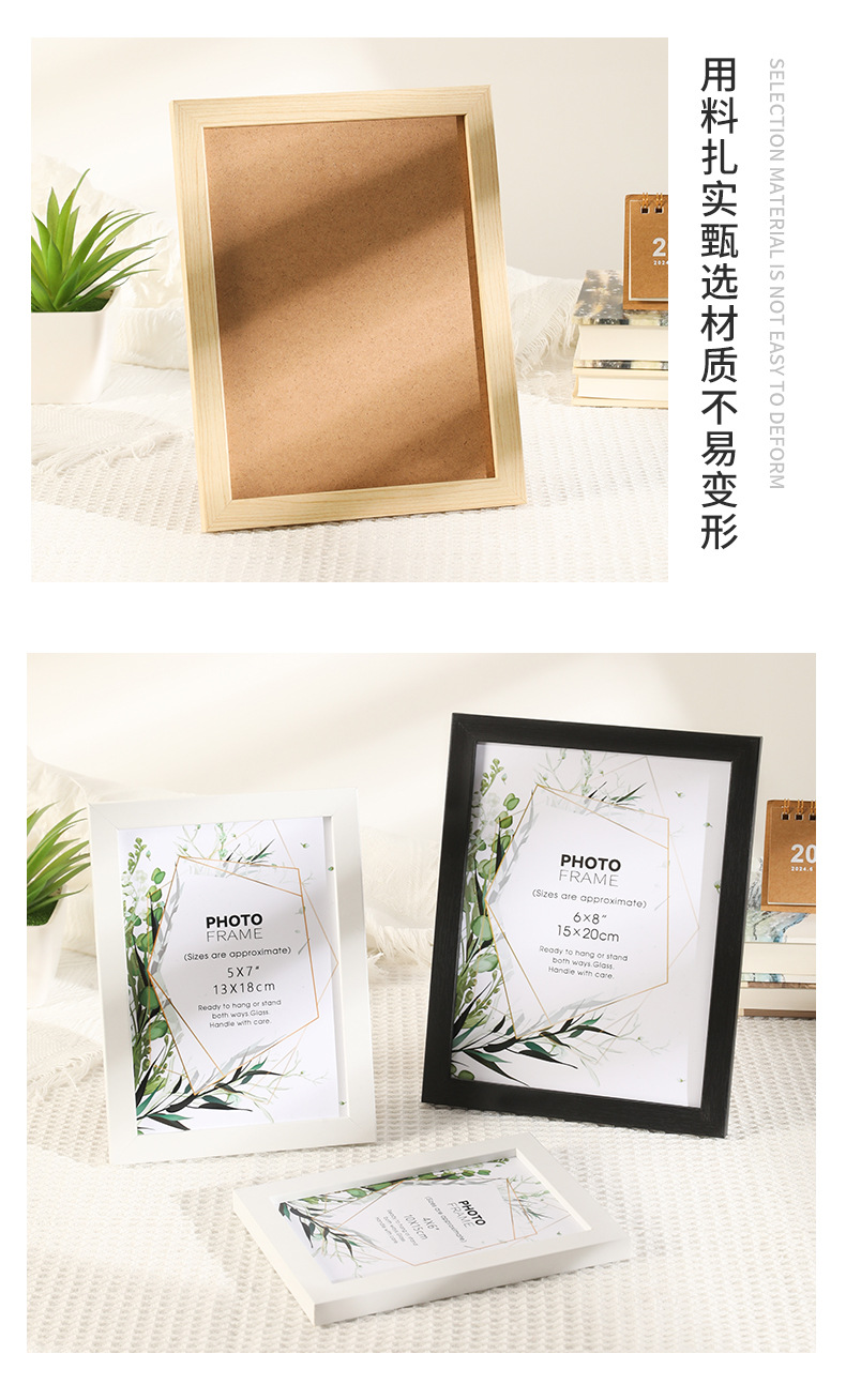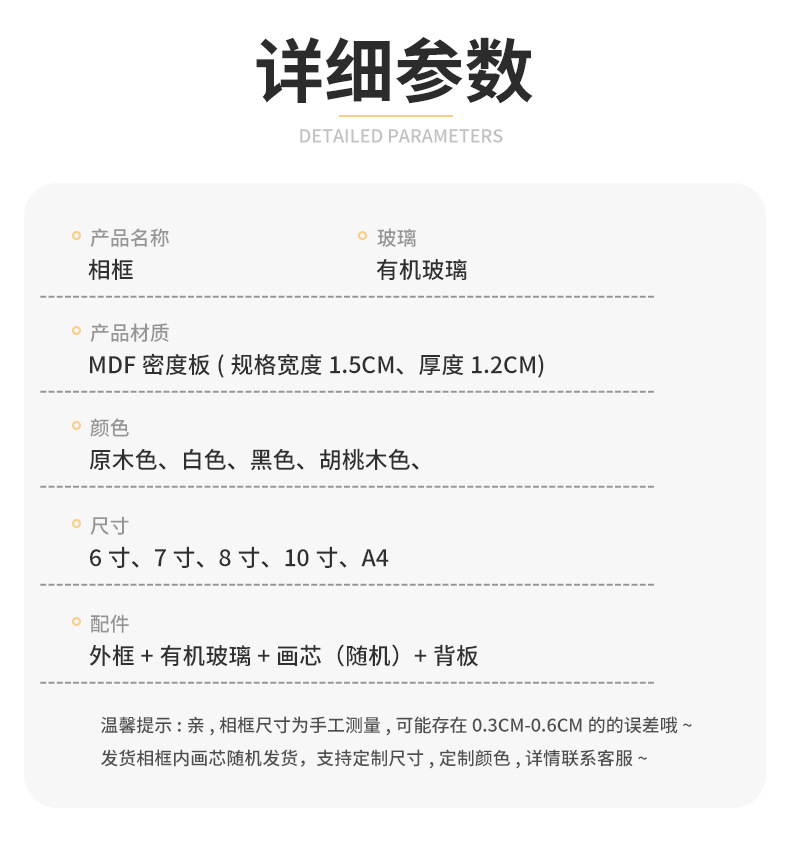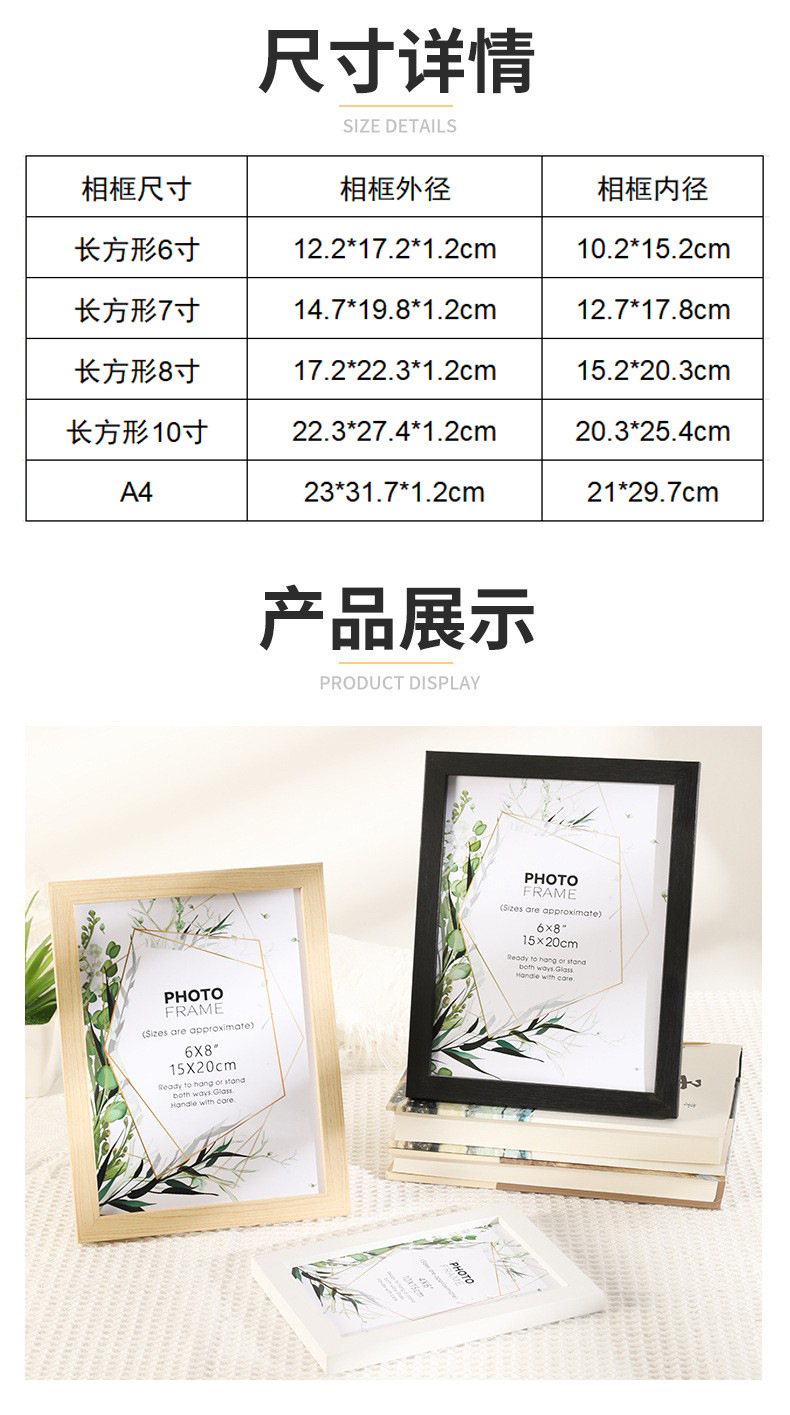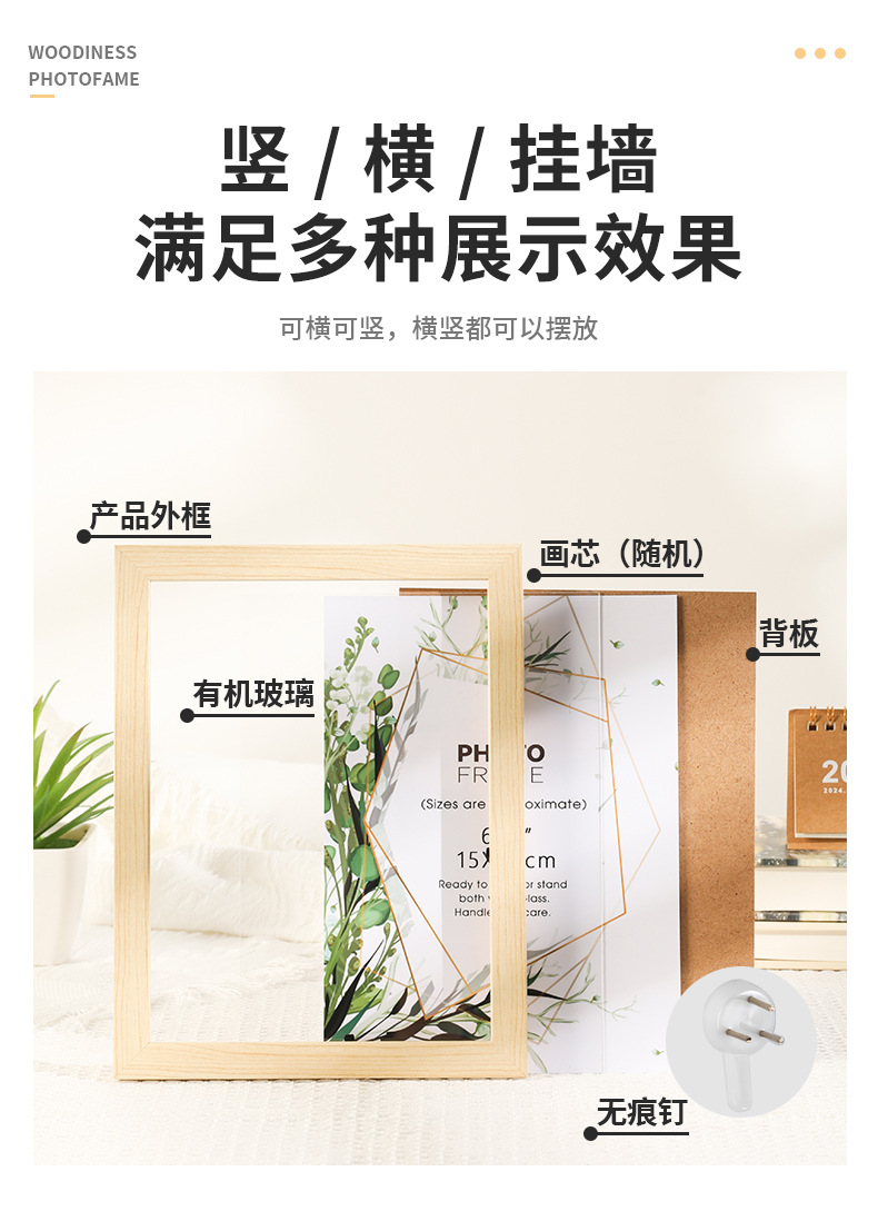 二、相框成品包含:外框、塑料有机玻璃面板、随机图案画芯,后密度板背板、
