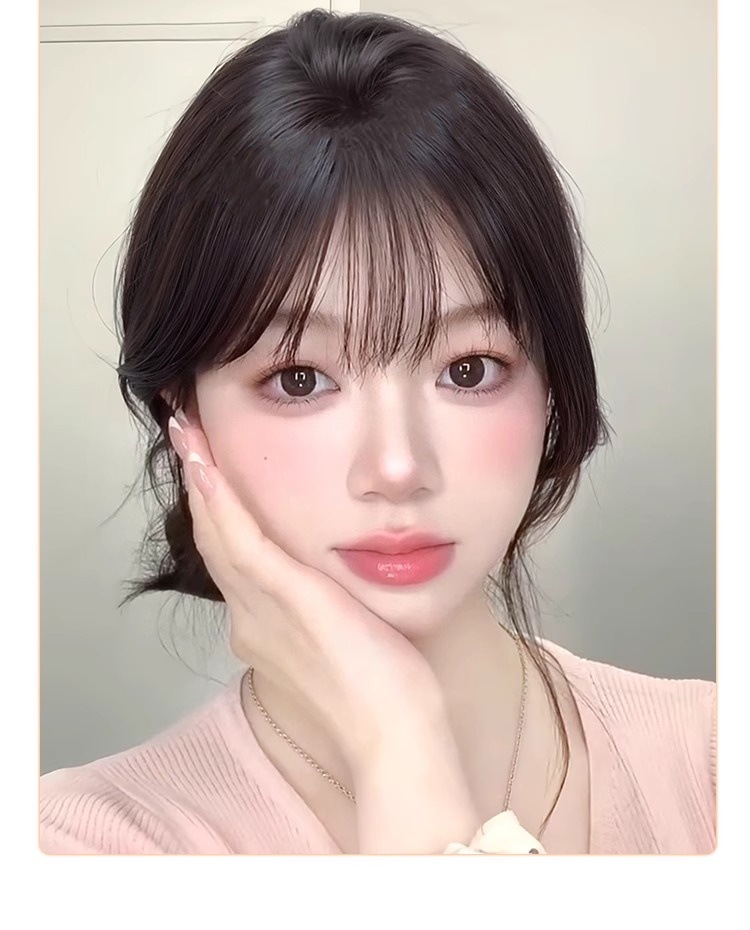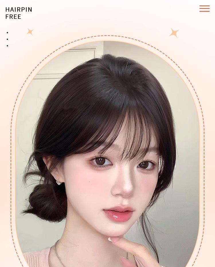【カード不要】女性用バングウィッグ、頭頂部補充、本物の髪、痕跡のない増毛、ヘアシームベルクロ