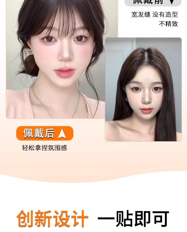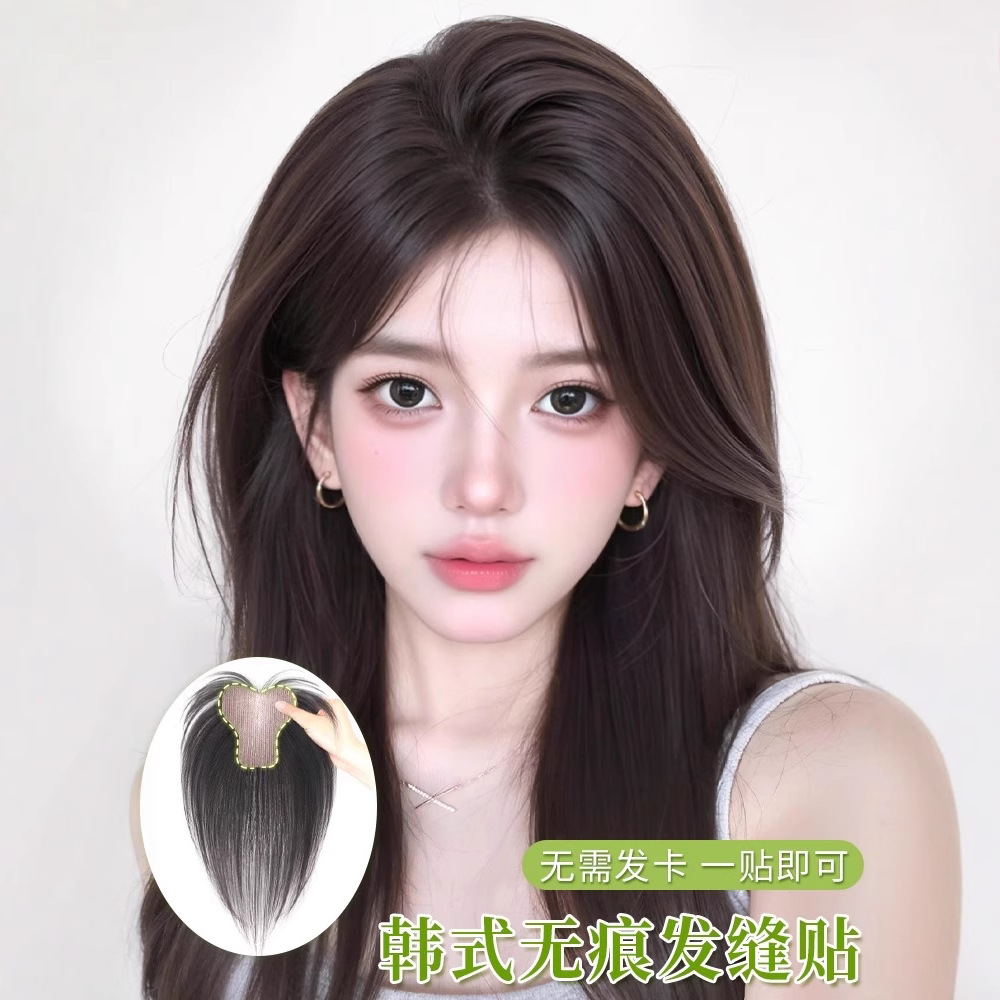 【ヘアピンは不要】女性用ウィッグピース、頭頂部の増毛、偽前髪、自然なシミュレーション、跡のないヘアシームステッカー