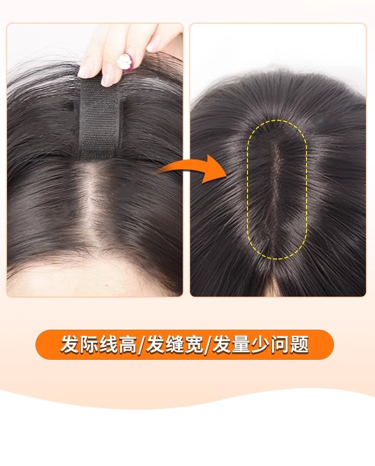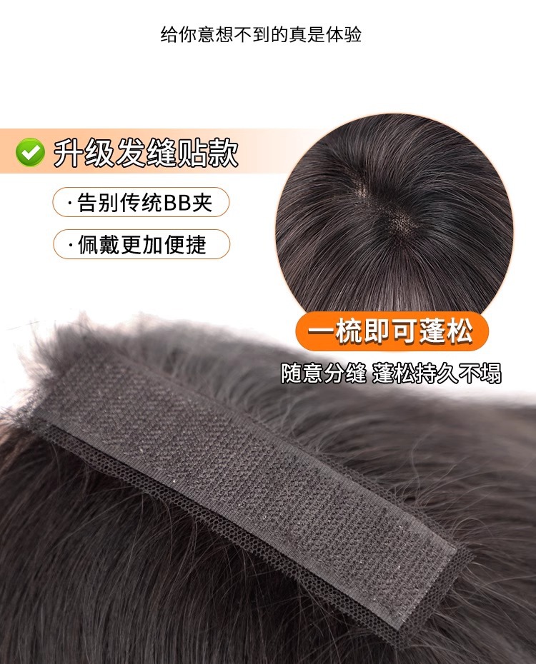 假发女无需发卡中分刘海头顶补发片蓬松自然仿真发魔术贴假发片