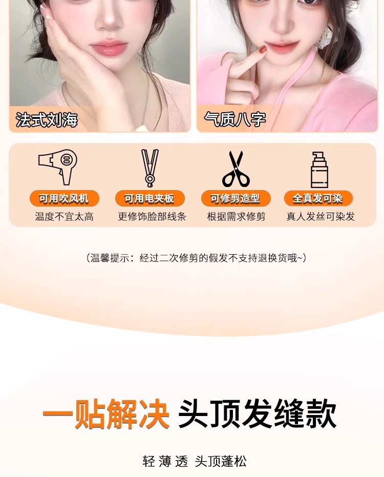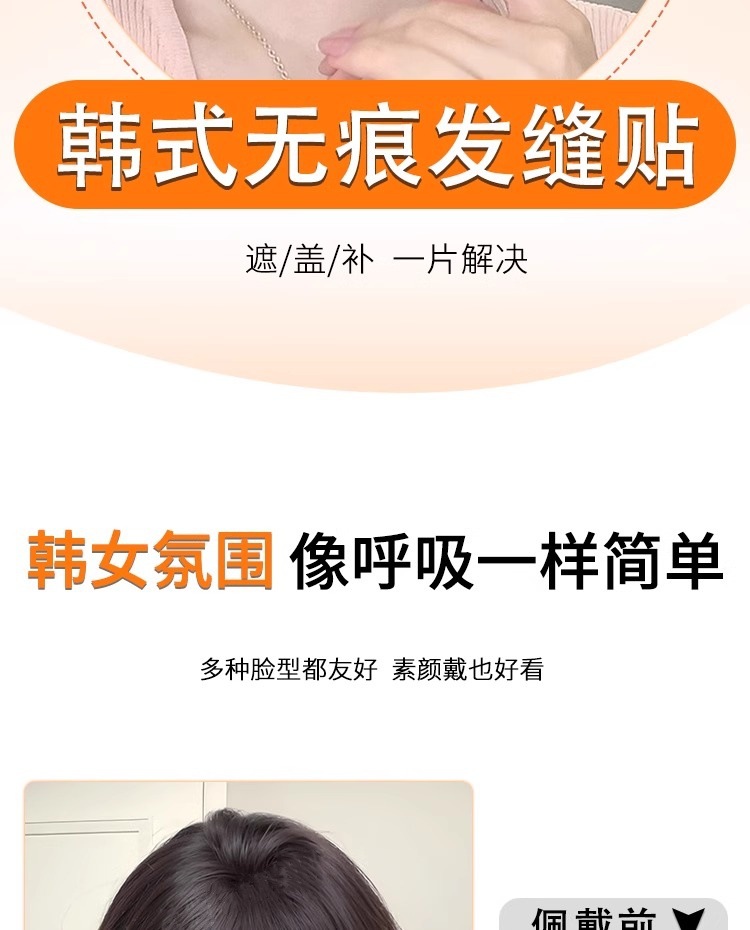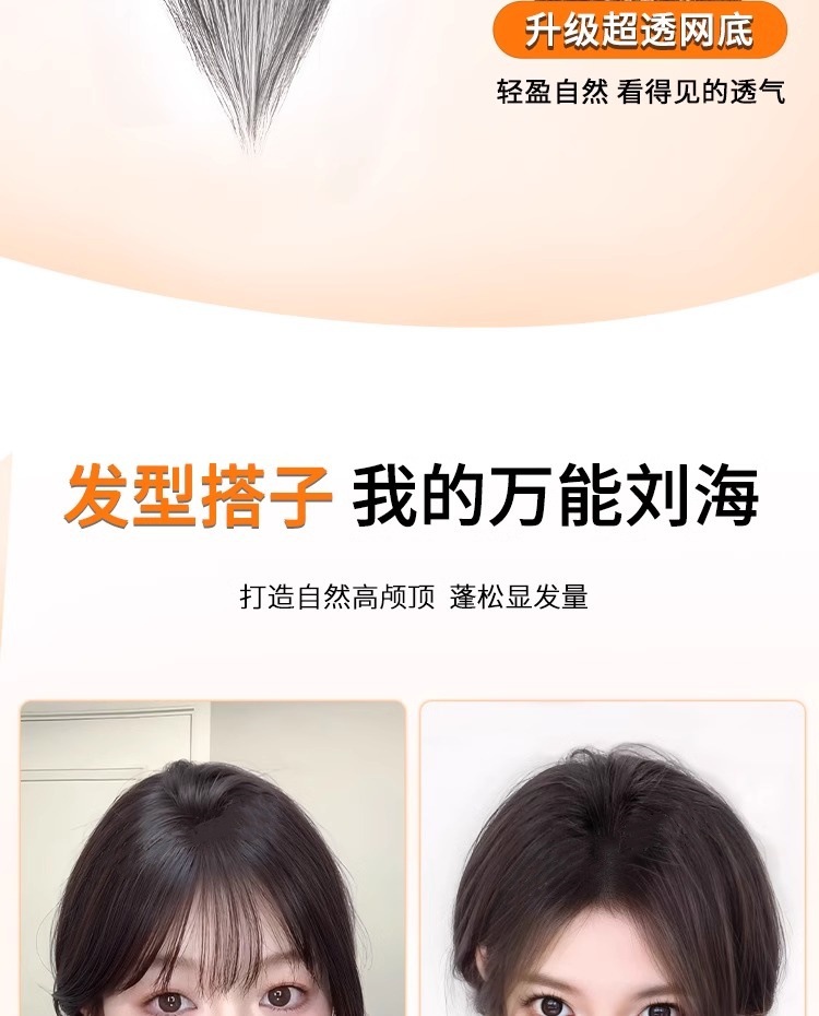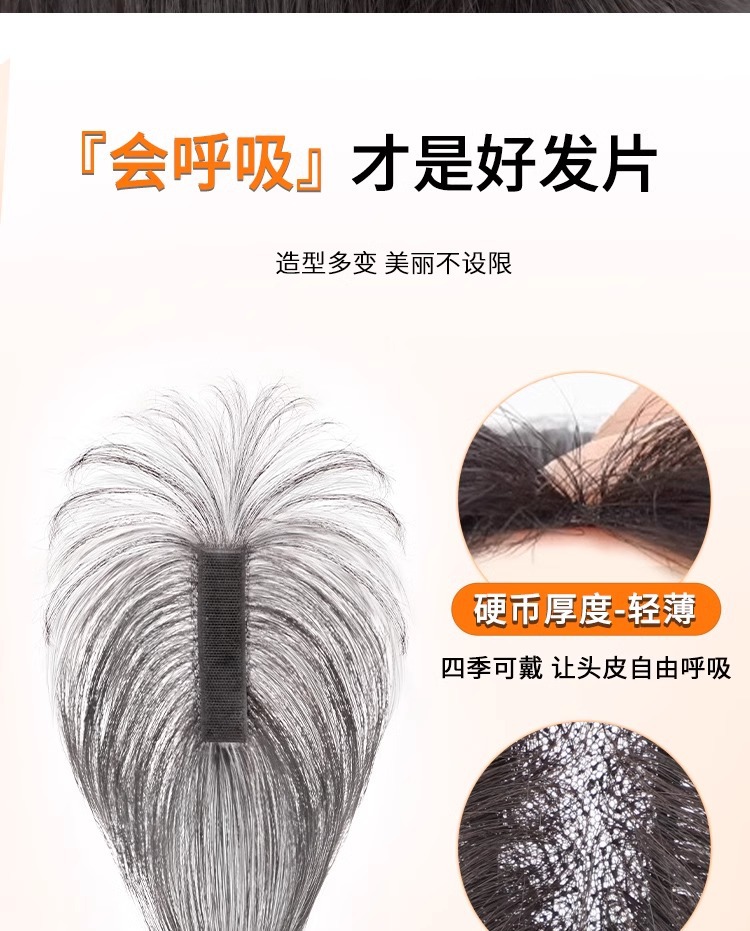 魔术贴【无需发卡】刘海假发片头顶补发全真发轻薄无痕隐形发缝贴