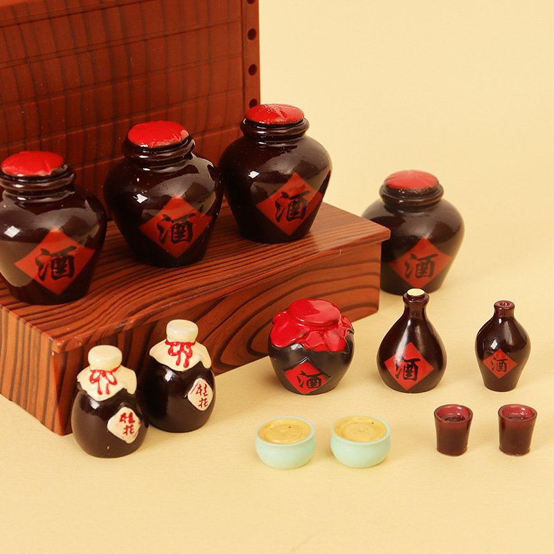 微景観ミニシミュレーションレトロ中国式酒壇小酒瓶酒碗酒杯飲酒詩人模型小置物