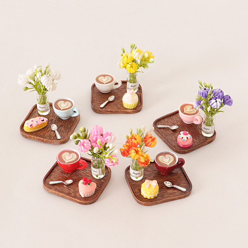 ドールハウスミニトレイモデル花瓶装飾品コーヒーカップ diy ケーキスプーン食品おもちゃシーン装飾アクセサリー