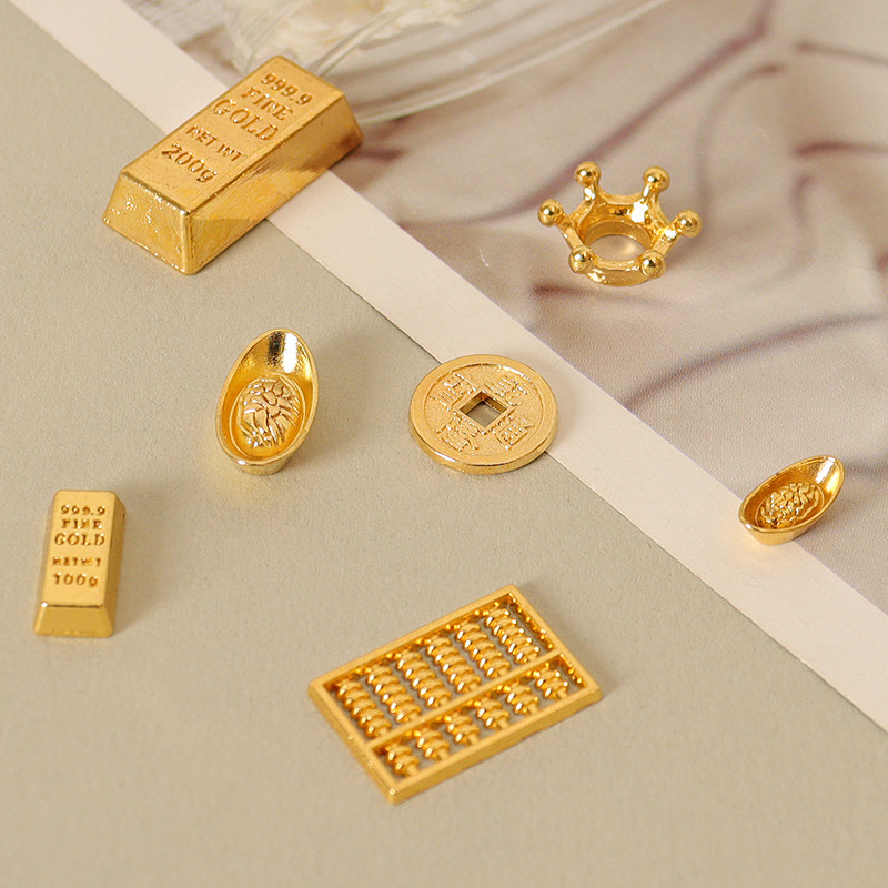 金レンガのミニチュアクラウンの金そろばんの元宝の置物のシーンをシミュレーションします。