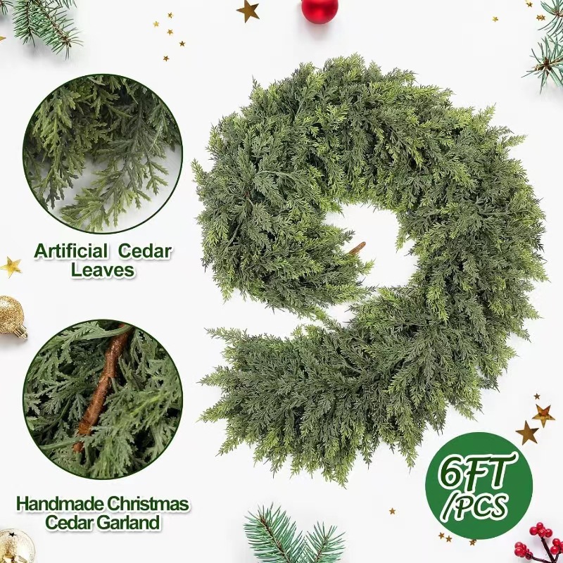 クロスボーダーメーカー直販 15m グリーンクリスマス毛糸人工クリスマスガーランド籐結婚式クリスマス装飾