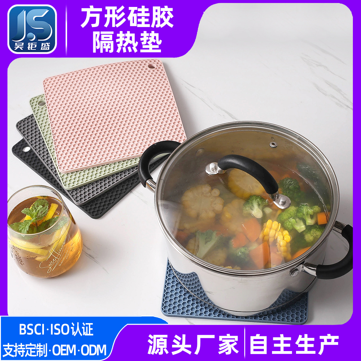 食品グレードの正方形シリコン断熱マット、耐熱カップマット、丸型シンプルプレースマット、火傷防止鍋敷き、テーブル断熱マット
