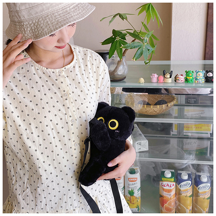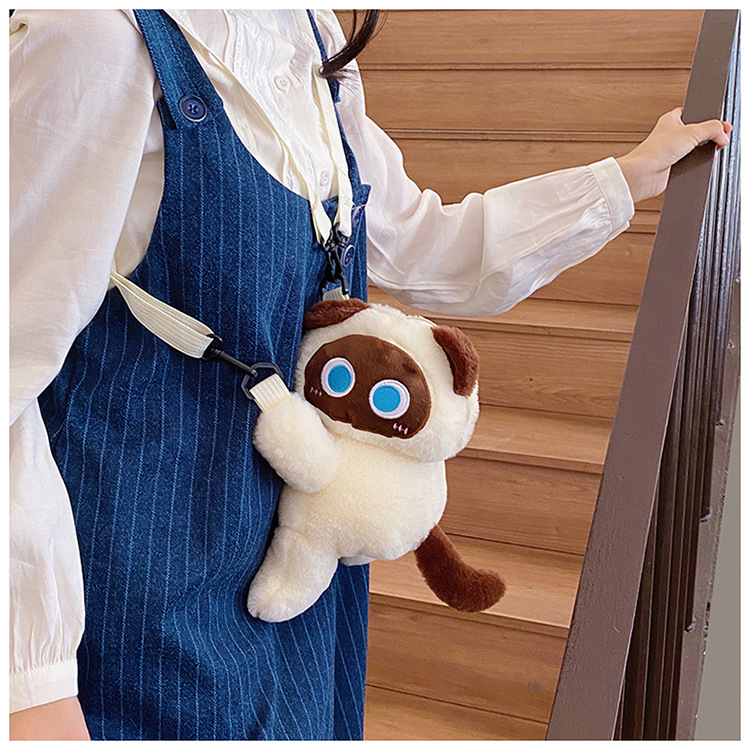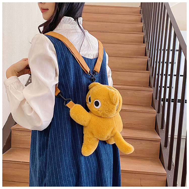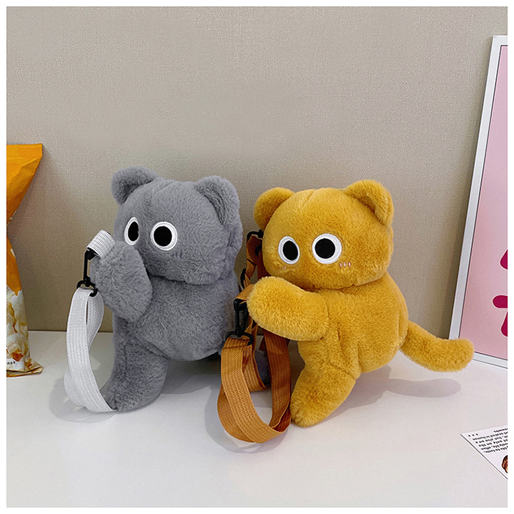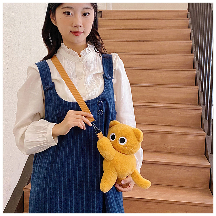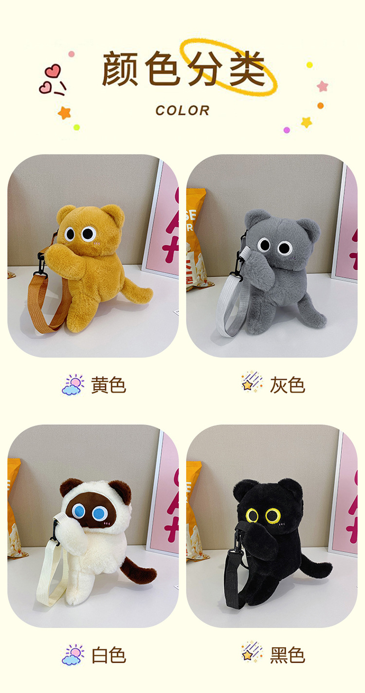 厂家直销小猫咪趴趴斜跨毛绒玩具包玩偶零钱包大容量少女心单肩包