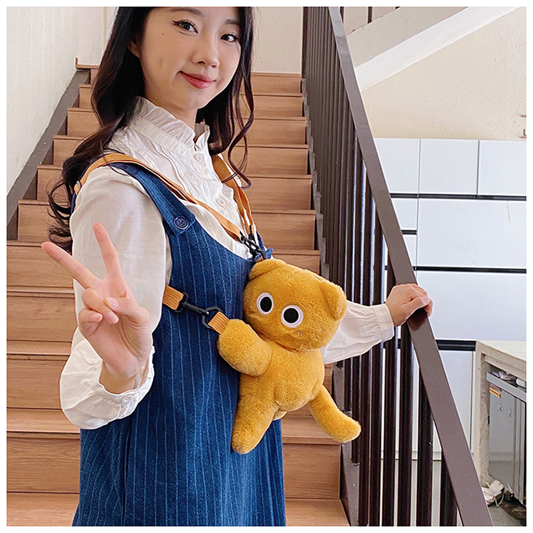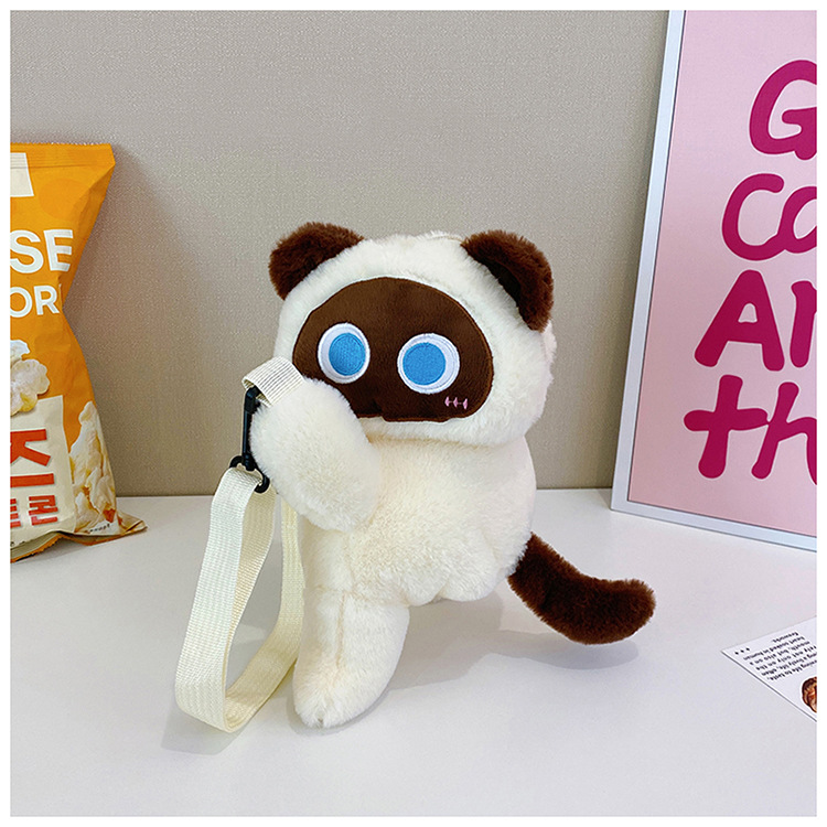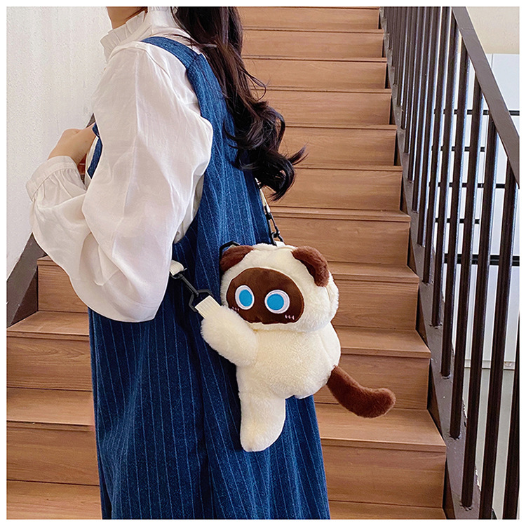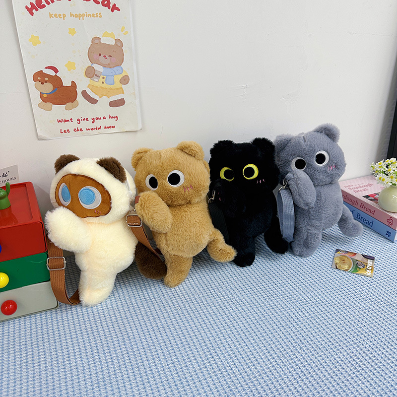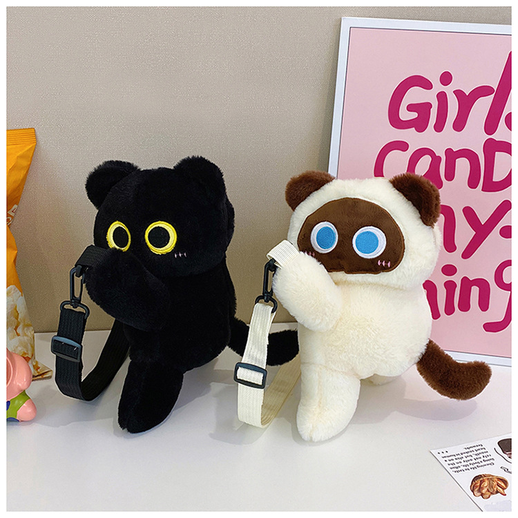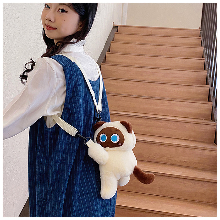 厂家直销小猫咪趴趴斜跨毛绒玩具包玩偶零钱包大容量少女心单肩包