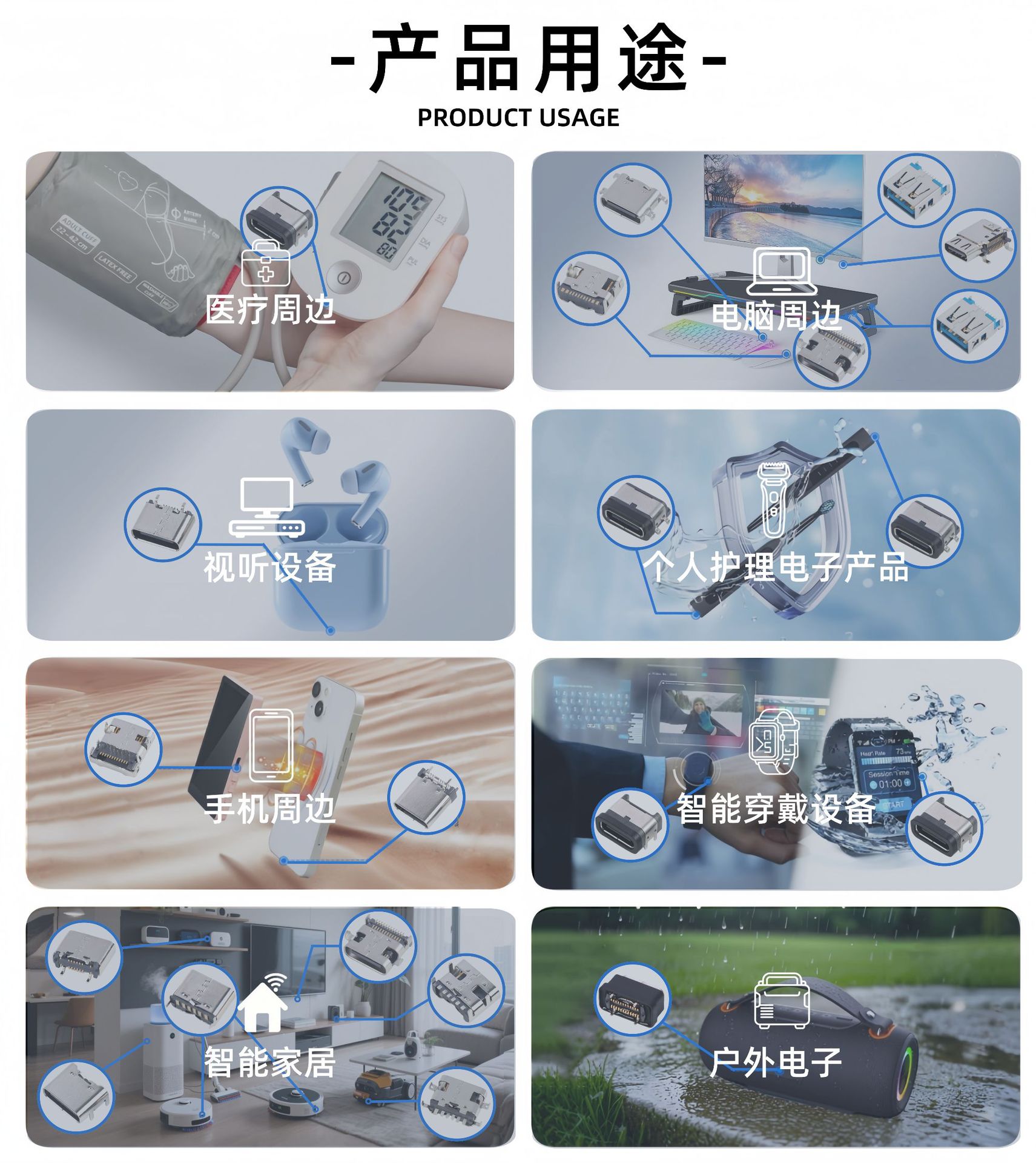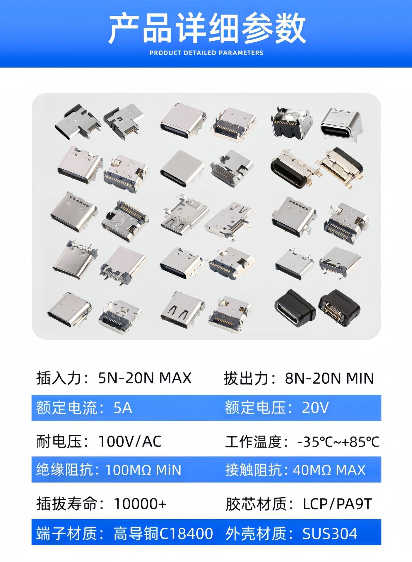 縦型Typec 24Pメスコンセント6.5/8.8/9.3/10.0 /10.4 BluetoothメガネTYPE-Cメスコンセント