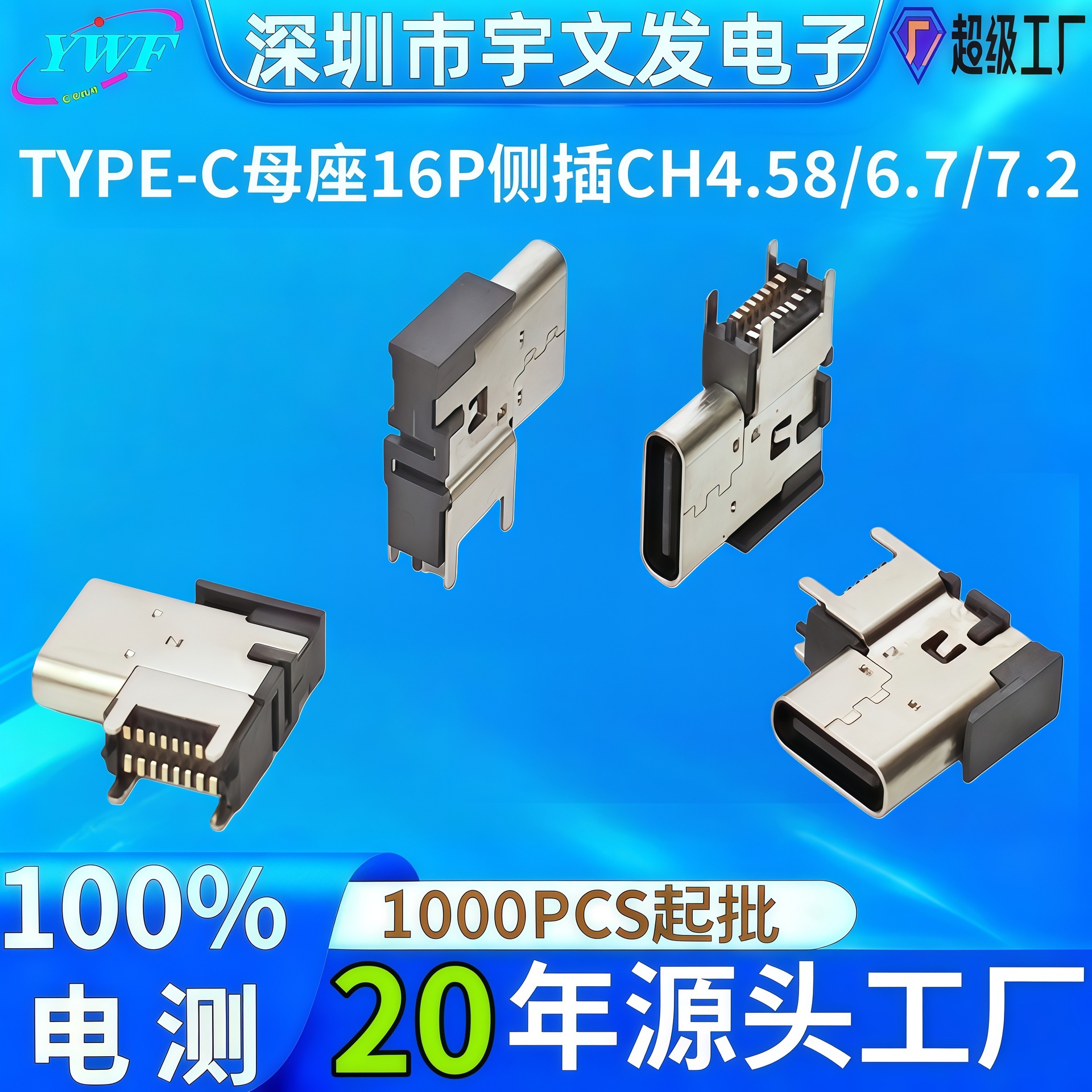 タイプC側面挿入メスソケット16ピン4ピンプラグ90度16P側面実装メスヘッド TYPE-Cメスソケットメーカー直販