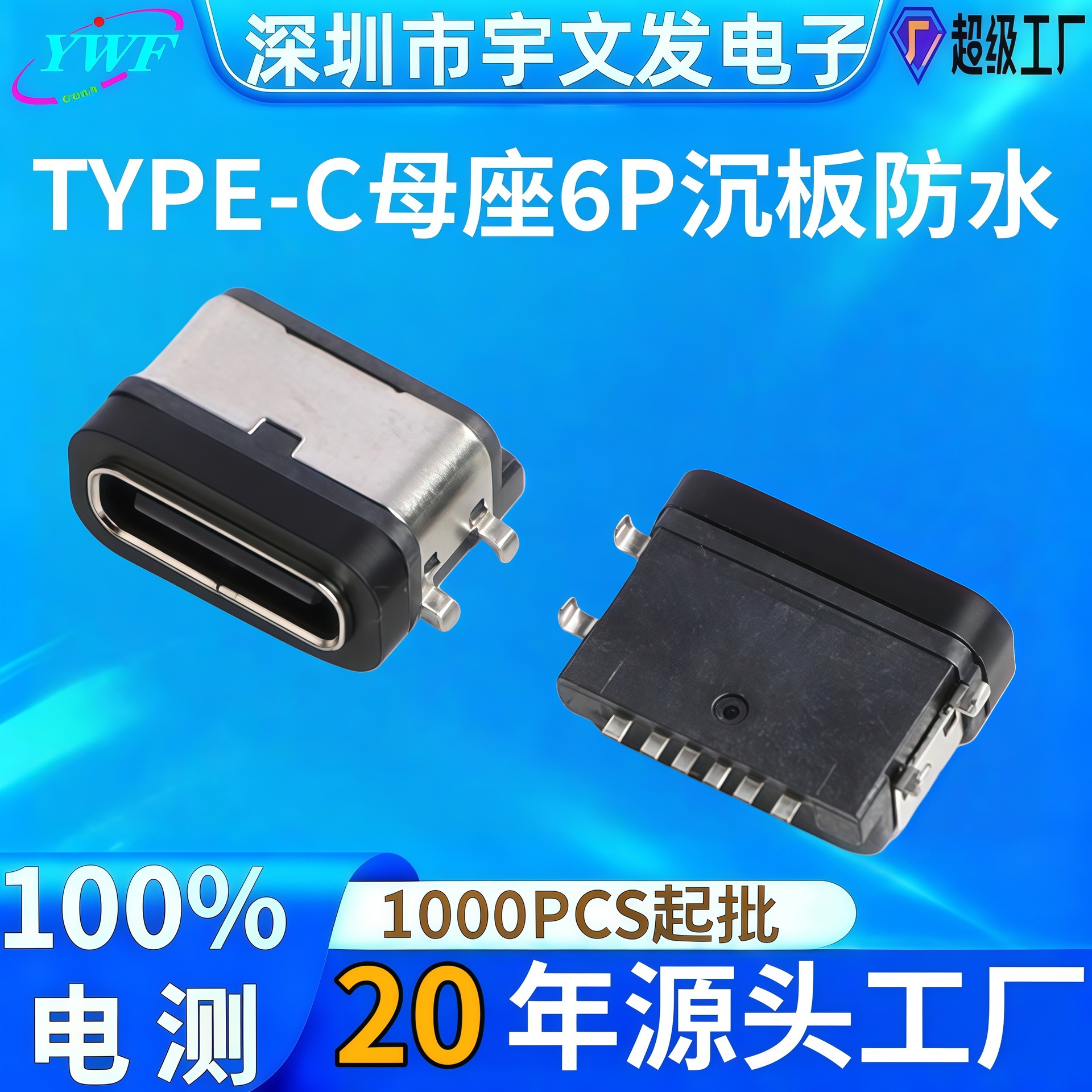 メーカー製 TYPE-C 6ピンメス型コネクタ L=8.2mm 沈板防水メス型コネクタ 4ピン電気接続用typecメス型コネクタ