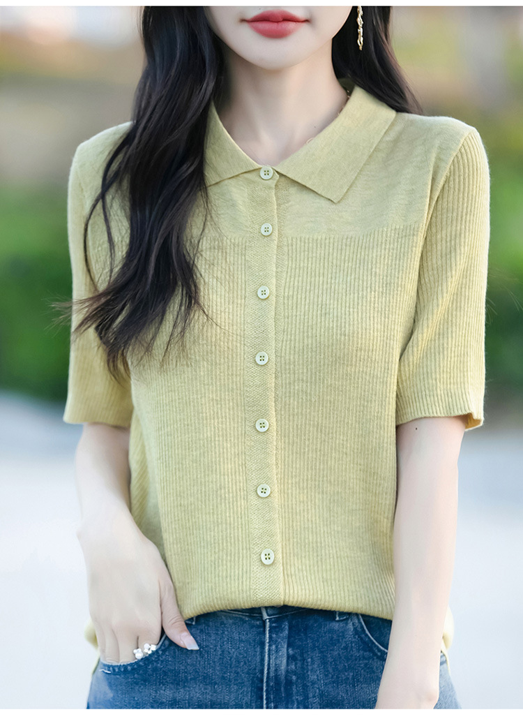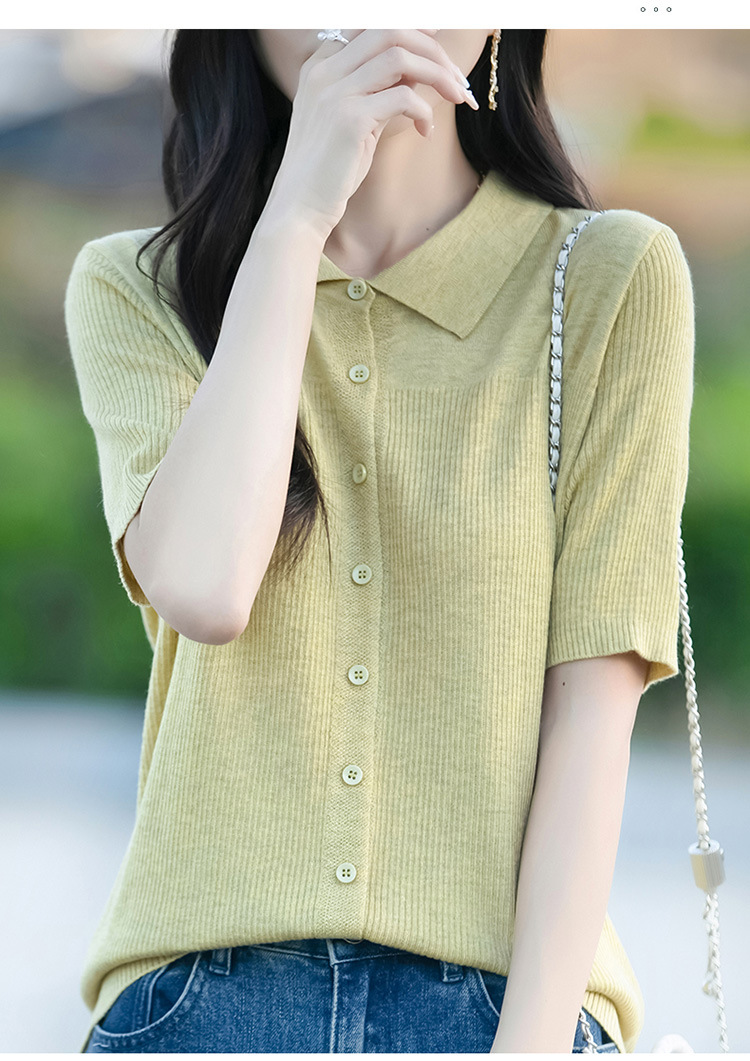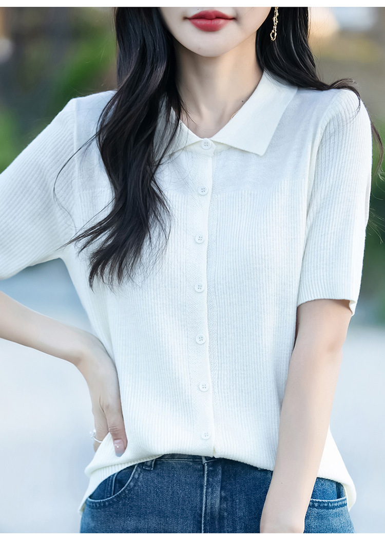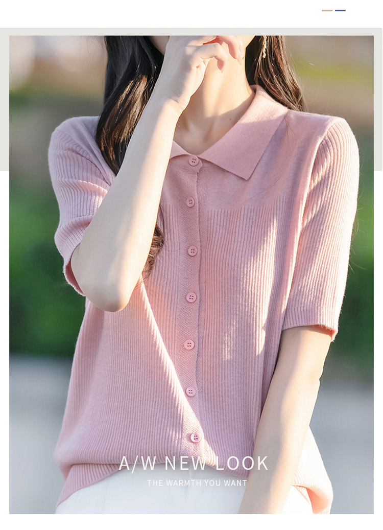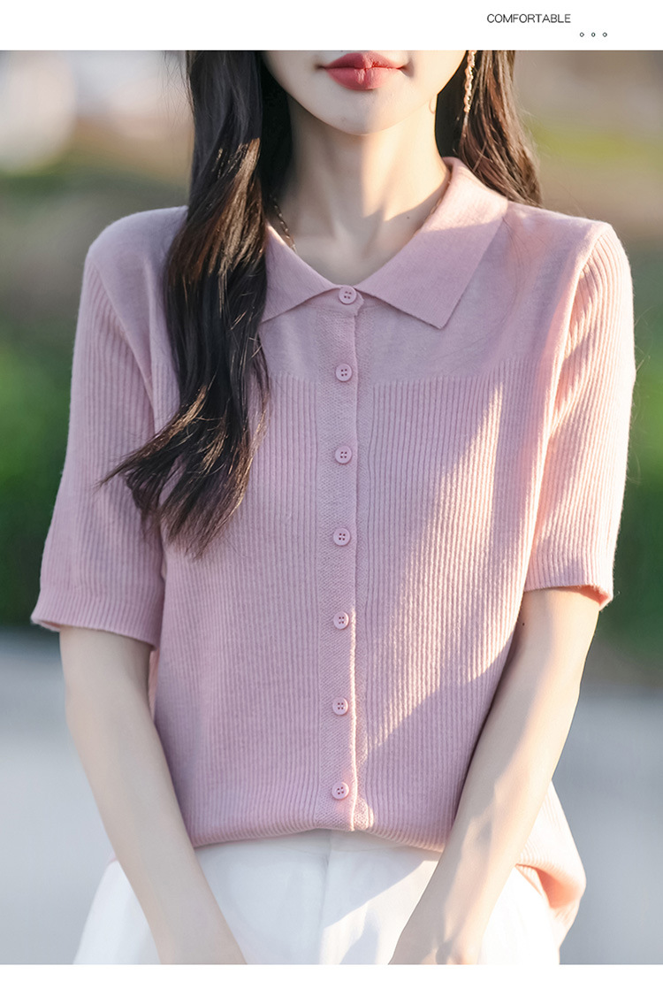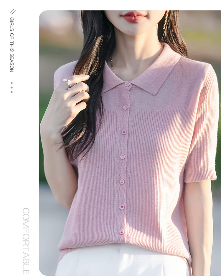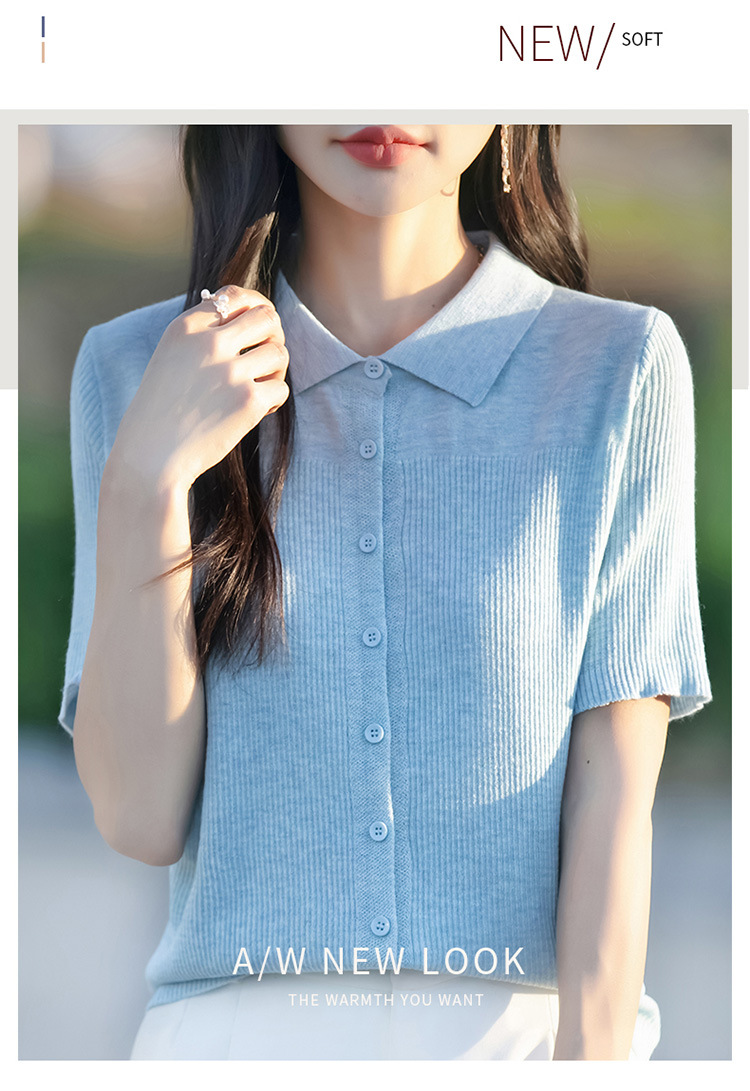POLO ラペルニットカーディガンレディースジャケット 2025 新しい梳毛ファインウール薄手のトップスリム気質中空袖