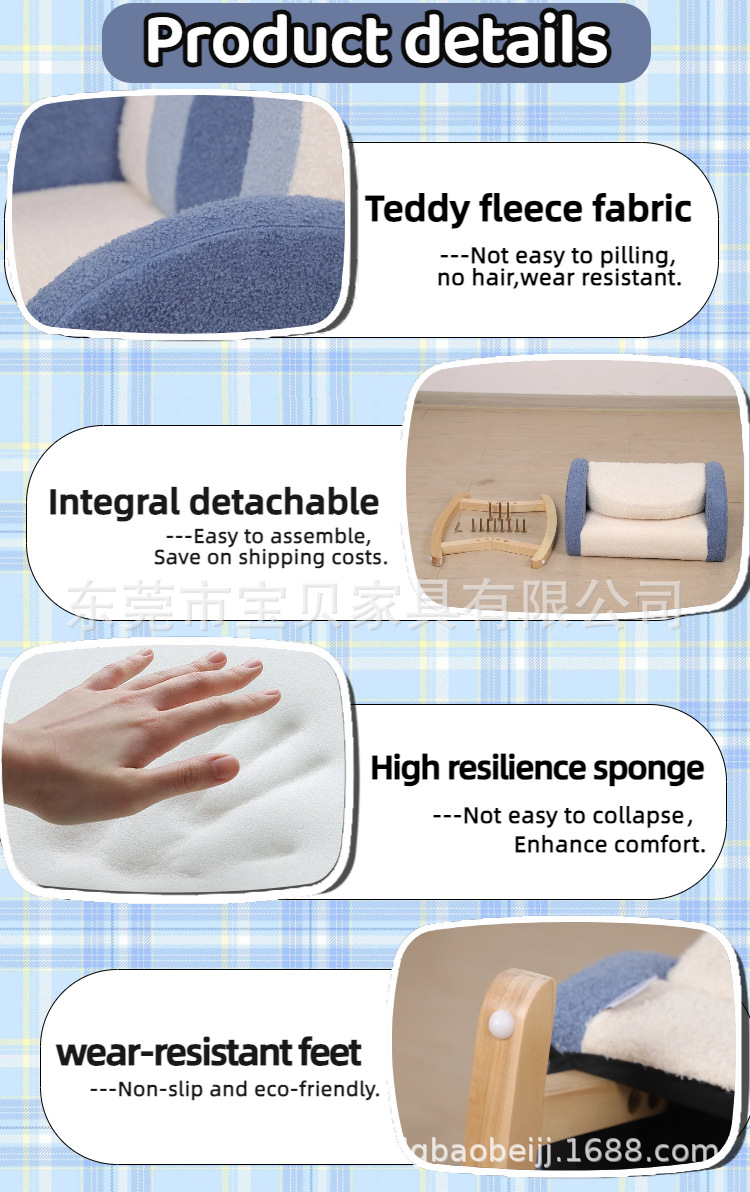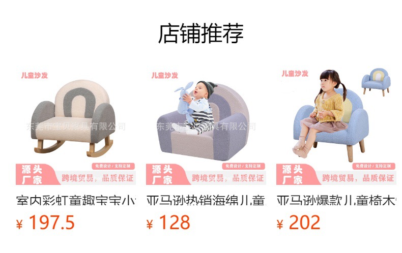 メーカーは幼稚園用の無垢材の子供用ソファチェア、足置き可能なベビーシート、漫画柄のベビーソファを製造しています。