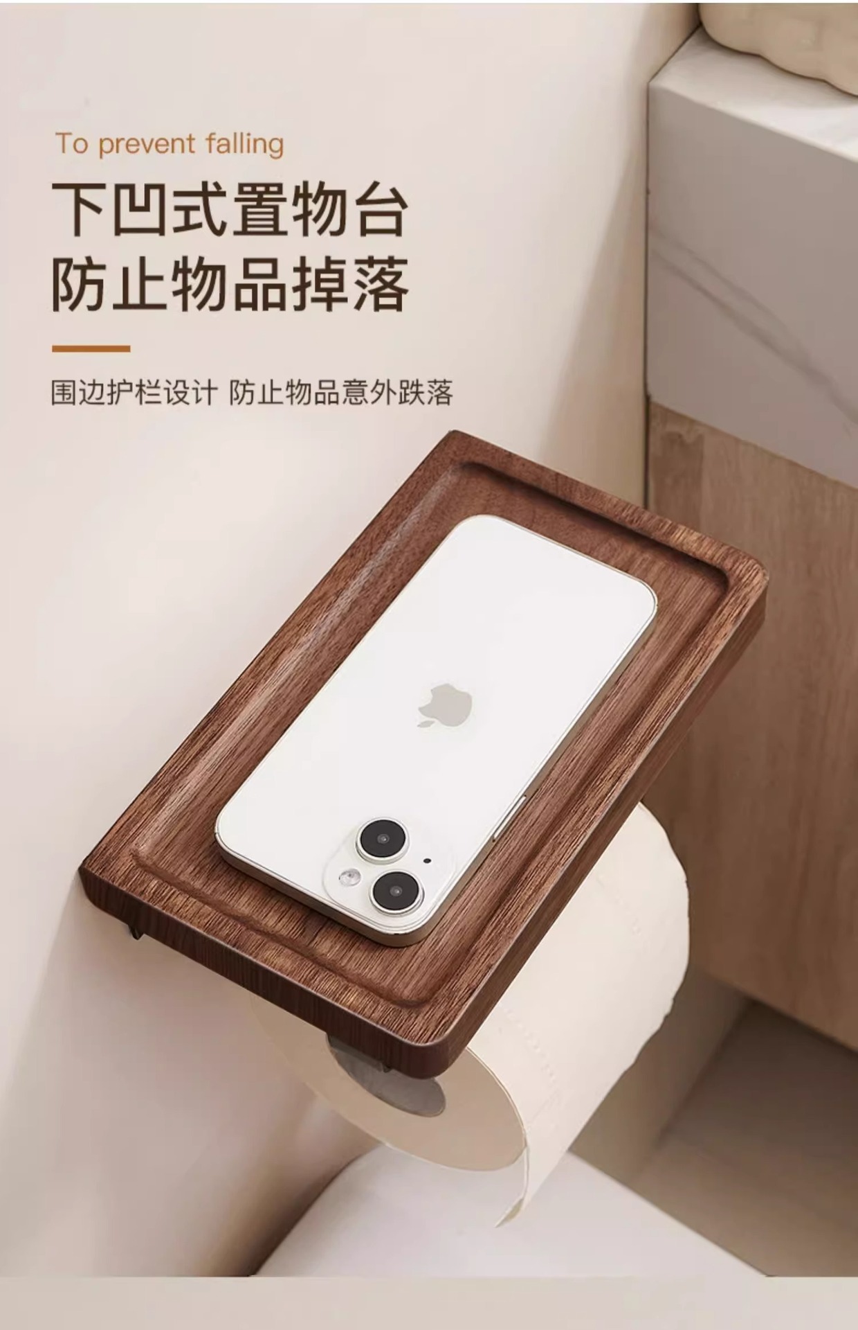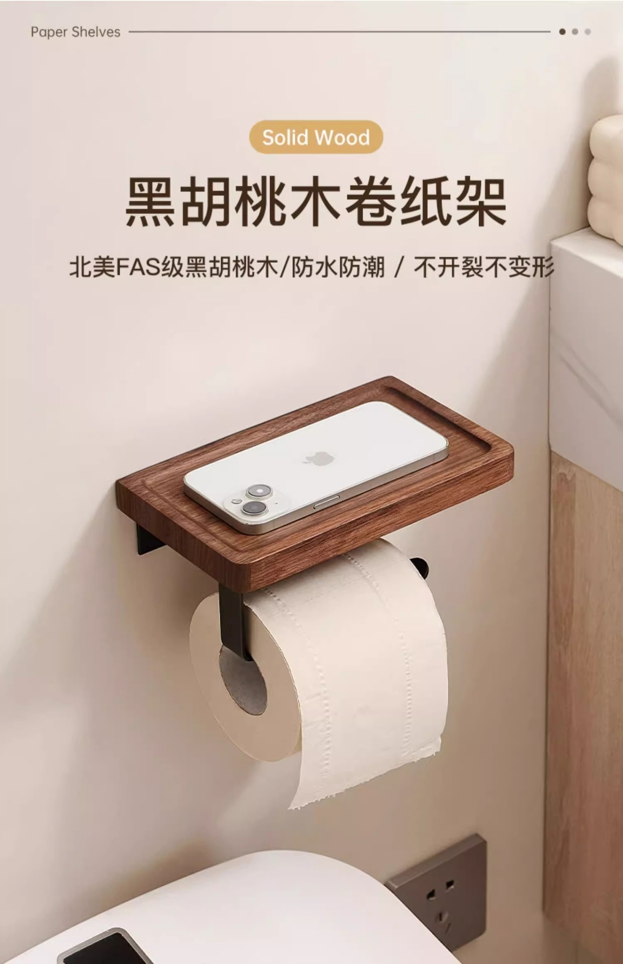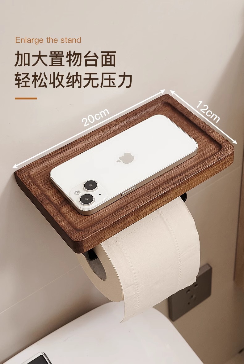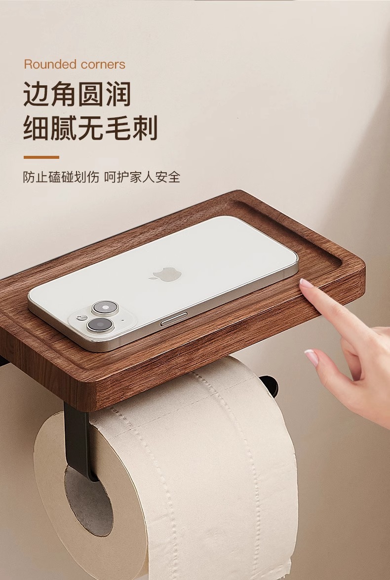 胡桃木卫生间厕纸盒厕所浴室洗手台纸巾盒置物架酒店卷纸架纸巾架