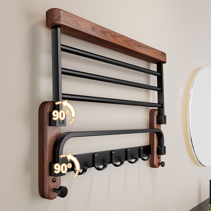 ウォールナットバスルームタオルラックパンチングなしミッドセンチュリースタイルハイエンドバスタオルラックトイレバスルームラック5点セット
